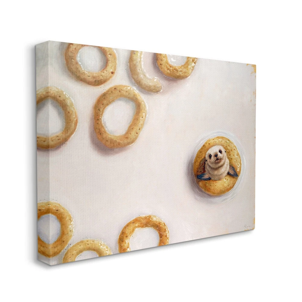 Stupell Sea Lion Seal Swimming Bowl Cereal Milk Canvas Wall Art - Brown