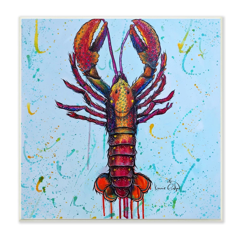 Proudly made in the USA, all of our wall plaques start off as high quality lithograph prints that are then mounted on durable 0.5 inch thick MDF wood. Each piece is hand finished and comes with a fresh layer of foil on the sides to give it a crisp clean look. It arrives ready to hang with no installation required, and comes with sturdy clear corners to keep it from damaging in transit.Features: Wall Art is Ready to Hang - No Installation or Hardware Needed. For Easy Set Up Lean or Layer Artwork on Shelf or Against Wall.All of our wall plaques start off as high quality lithograph prints that are then mounted on durable 0.5 inch thick MDF wood. Each piece is hand finished and comes with a fresh layer of foil on the sides to give it a crisp clean look. Made In USA.Artwork Relates To: Sea Free Shipping Over $49.99* Details Stupell Urban Style Lobster Paint Splatter Sea Life Wood Wall Art, Design by Product Description: Proudly made in the USA, all of our wall plaques start off as high quality lithograph prints that are then mounted on durable 0.5 inch thick MDF wood. Each piece is hand finished and comes with a fresh layer of foil on the sides to give it a crisp clean look. It arrives ready to hang with no installation required, and comes with sturdy clear corners to keep it from damaging in transit. Features: Wall Art is Ready to Hang - No Installation or Hardware Needed. For Easy Set Up Lean or Layer Artwork on Shelf or Against Wall. All of our wall plaques start off as high quality lithograph prints that are then mounted on durable 0.5 inch thick MDF wood. Each piece is hand finished and comes with a fresh layer of foil on the sides to give it a crisp clean look. Made In USA. Artwork Relates ToSea Life; Animal; Crawdad; Seafood; Lobster; Painting; Design by Karrie Evenson