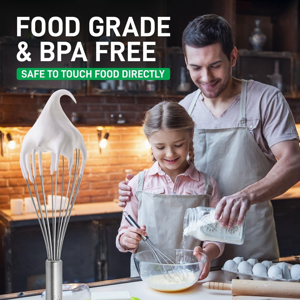Zulay (3 Pack) Stainless Steel Whisk Set 8" 10" 12" - Sturdy 7 Wire Whisks For Features: PREMIUM STAINLESS STEEL WHISK: Elevate your baking game with our balloon wire whisk - the key to smooth, lump-free batter. The sturdy, food-grade wires offer the durability to whisk thick mixtures. You won’t have to worry about rust or bends with our egg whisks. MULTIPLE SIZES: Our whisks for cooking come in three different sizes(8”, 10”, 12”), suitable for all your mixing tasks in the kitchen. From combining dry ingredients to making fluffy scrambled eggs or salad dressings, this whisk set does it all! NO MORE HAND FATIGUE: Our balloon-shaped baking whisk, designed with a comfortable grip handle, lets you quickly mix up a fluffy batter without getting tired. Experience the joy of baking with your friends and family using this metal whisk. EASY TO CLEAN AND STORE: Removing dried batter is super simple with our kitchen whisks. Toss these in the dishwasher or wash with warm, soapy water for quick cleaning. The handle is designed with a hanging hole for spacing-saving storage. HASSLE-FREE, ZULAY GUARANTEE: We are a family owned USA business that believes in providing customers with the best quality products. Our wire whisks for cooking are backed with a lifetime warranty. Features: PREMIUM STAINLESS STEEL WHISK: Elevate your baking game with our balloon wire whisk - the key to smooth, lump-free batter. The sturdy, food-grade wires offer the durability to whisk thick mixtures. You won’t have to worry about rust or bends with our egg whisks. MULTIPLE SIZES: Our whisks for cooking come in three different sizes(8”, 10”, 12”), suitable for all your mixing tasks in the kitchen. From combining dry ingredients to making fluffy scrambled eggs or salad dressings, this whisk set does it all! NO MORE HAND FATIGUE: Our balloon-shaped baking whisk, designed with a comfortable grip handle, lets you quickly mix up a fluffy batter without getting tired. Experience the joy of baking with your friends and family using this metal whisk. EASY TO CLEAN AND STORE: Removing dried batter is super simple with our kitchen whisks. Toss these in the dishwasher or wash with warm, soapy water for quick cleaning. The handle is designed with a hanging hole for spacing-saving storage. HASSLE-FREE, ZULAY GUARANTEE: We are a family owned USA business that believes in providing customers with the best quality products. Our wire whisks for cooking are backed with a lifetime warranty. eBay integration by