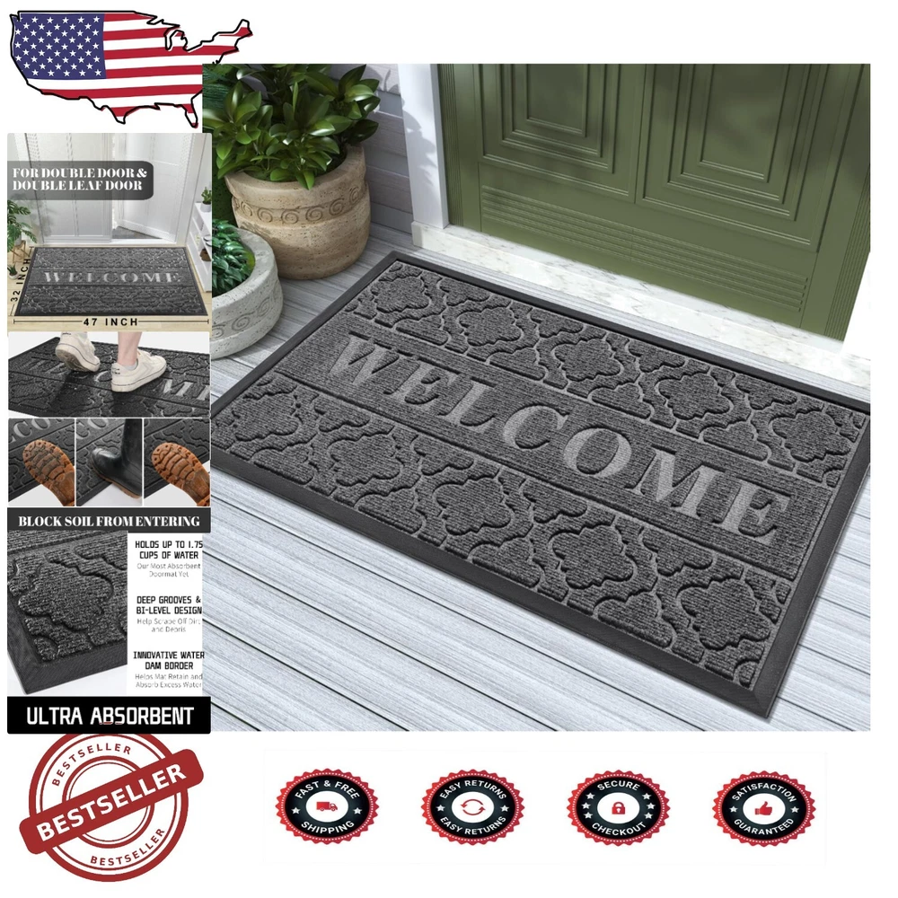 Sturdy 47x32 Non-Slip Doormat - Heavy Duty Waterproof Protection for Entrances ‹ › ‹ › ‹ › ‹ › ‹ › ‹ › ‹ › ‹ › Sturdy 47x32 Non-Slip Doormat - Heavy Duty Waterproof Protection for Entrances Features: Distinctive groove pattern design featuring "WELCOME" lettering adds a friendly touch to your doorstep. Made from environmentally friendly polypropylene material that effectively captures and retains dirt, dust, and sand. Non-slip natural rubber backing adheres securely to any floor, providing excellent anti-slip performance. Reinforced thick rubber border enhances stability to prevent slipping. Crafted using advanced hot-melt planting production for high tensile strength and tear resistance. Weather resistant, designed to endure sunlight, rain, snow, and various outdoor conditions. Easy to clean—simple broom sweep for surface dust; deep clean with high-pressure washer for stubborn stains. Stylish and practical for both indoor and outdoor use, perfect for homes, offices, and busy areas. Benefits: Add a welcoming and stylish element to your entrance. Durable and rugged, able to withstand various weather conditions. Prevents dirt and debris from entering your home, keeping your floors clean. Secure grip ensures safety and stability for family and guests. Versatile design complements any decor, whether indoors or outdoors. Why choose our Sturdy Non-Slip Doormat? Elevate your home's entrance with our Sturdy 47x32 Non-Slip Doormat. Combining elegance with functionality, this doormat is designed to enhance your home's allure while providing superior protection against dirt and moisture. The unique groove pattern and "WELCOME" design offer an inviting statement to your guests, ensuring they feel right at home. No more worries about slippery entrances thanks to the robust non-slip rubber backing. This rugged and sturdy doormat withstands the test of time and weather, making it the perfect companion for busy entrances or serene outdoor spaces. Experience effortless cleaning and remarkable durability that keeps your home pristine. Don’t settle for ordinary – embrace extraordinary style and protection with our doormat. Order yours today and transform your entryway into a warm and welcoming space! Shipping Free & Fast Shipping - We offer free shipping to most of the USA with a normal delivery time of 3-7 days. However, due to the current situation, additional delivery time (up to 3 weeks) may be required for some items. Alternative Carriers - We may use alternative carriers (e.g. USPS, FedEx, UPS, etc.) to ensure your package arrives safely and on time. Due to the use of multiple carriers, we are unable to provide a tracking number automatically. Handling Time - Orders are processed and shipped within 1-2 business days of receiving cleared payment. Shipping Restrictions - Shipping to Alaska, Hawaii, Puerto Rico, Guam, and other US territories may incur shipping charges or delivery restrictions. Please contact us before ordering, or your order can be refunded/cancelled. State Restrictions - There may be restrictions based on your state of purchase. For example, certain items may not be shipped to California due to state regulations. Contact for Tracking Updates - If you require tracking updates or have any concerns about the delivery of your order, please feel free to contact us, and we will be happy to assist you. Return 30-Day Hassle-Free Returns - We want you to be completely satisfied with your purchase. If you are not, you can return the item within 30 days of receiving it for a full refund or exchange. Easy Return Process - To start a return, simply contact us and we will provide you with a prepaid return shipping label and detailed instructions. Restocking Fee - There are no restocking fees for returns. However, the buyer is responsible for return shipping costs if the return is not due to a seller's error. Refund Processing Time - Refunds will be processed within 5 business days of receiving the returned item in its original condition. Payment We accept all major credit cards, PayPal, and Apple Pay for your convenience. Your payment information is secure and encrypted to ensure a safe and seamless transaction. Please complete your payment within 3 days of purchase to avoid any delays in shipping. Feedback Your feedback is extremely important to us. We strive to provide the best products and customer service possible. If you are satisfied with your purchase, please take a moment to leave us a positive review. If you have any concerns or issues with your order, please contact us before leaving negative feedback. We are committed to resolving any problems and ensuring your satisfaction. Contact Us If you have any questions or concerns, please feel free to reach out to our customer support team. You can contact us through the eBay messaging system. We are available Monday to Friday, 9:00 am to 5:00 pm EST, and we will do our best to respond to your inquiry within 24 hours. Buy it now and enjoy a pleasant shopping experience! UPC: Not Set Unit Quantity: 5.9 Room: Any Room,Hallway Material: Rubber,Polypropylene Features: Non-Slip,Stain Resistant,Waterproof,Fade Resistant,Washable Department: Adults Theme: Garden Brand: Unbranded Type: Doormat Color: Dark Gray Pattern: Letter Print Shape: Rectangle Item Width: Not Set Item Length: Not Set MPN: Not Set Model: Not Set Size: 47 x 32 in Style: Modern Pile Height: Low Pile Regional Design: Not Set Country/Region of Manufacture: Not Set Weave: Machine Made Pile Type: Low Era: 21st Century (2000-Now) Unit Type: lb Personalize: Not Set Personalized: Not Set