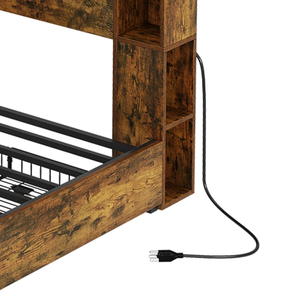 Metal Bed Frame 89.7" x 61.4" w/ Headboard Storage & Underbed Hidden 4 Drawers Product Description NOTE: Professional Installation would be Highly Recommended. Description: 1. Material: Metal 2. Color: Burnt Wood 3. Features: 4 Underbed Drawers, Built in Charging Station, Headboard with Storage, USB Port 4. Suitable for: Master Bedroom, Guest Room, Kids Room 5. Warranty: 1 Year 6. Mattress Size: Queen Features: Integrated Storage Headboard: This bed frame features a headboard with multiple shelves, perfect for displaying your favorite books and decor. The clever design helps keep your essentials within arm's reach, enhancing both style and functionality. Advanced Charging Station: With built-in USB and USB-C ports, this frame allows you to conveniently charge your devices. Enjoy the luxury of powering your gadgets directly from your bed, eliminating the need for additional outlets. Spacious Under-Bed Drawers: Four generously sized drawers provide ample storage for clothing, bedding, and more. The easy-glide design ensures smooth operation, helping you maintain a tidy and organized bedroom. Durable Metal Construction: Crafted from high-quality metal with a burnt wood finish, this bed frame offers both strength and elegance. Its robust design ensures long-lasting stability, supporting a restful night's sleep. Versatile Room Suitability: Designed to complement any room, this bed frame is ideal for master bedrooms, guest rooms, and kids' rooms. Its timeless aesthetic and practical features make it a versatile addition to any home. Dimensions: 1. Overall Size: 89.7" x 61.4 x 51" Queen Mattress Package Included: PACKAGE WILL BE SENT THROUGH 2 DIFFERENT SHIPPING 1. Set of Bed Frame (MATTRESS NOT INCLUDED) 2. Assembling Hardware Kits 3. Instruction Manual Book Shipping 1. Normally the item will be dipatched within 1 business day if payment is cleared before 12pm PST. 2. Please verify the correct shipping address in your PayPal account before making the payment. We only dispatch the item to the address that is sent to us at the time of checkout. 3. We don't ship to Hawaii, Alaska, Puerto Rico, APO/FPO/PO Boxes. 4. We don't provide local pick-up service. 5. Normally we will use USPS, UPS, FedEx & LTL to dispatch items. Payment 1. We accept PayPal and credit card. 2. We will ship to the confirmed Paypal shipping address that is provided with the payment only. Return 1. 30 days Money Back Guarantee. 2. Please contact our customer service to receive a RMA form first if want to return the item. 3. All returned items MUST in new condition with the original package. Contact If has any problem, please contact us by sending an ebay message. Our customer service will resolve the problem as soon as possible. On Feb 10, 2025 at 02:34:43 PST, seller added the following information: