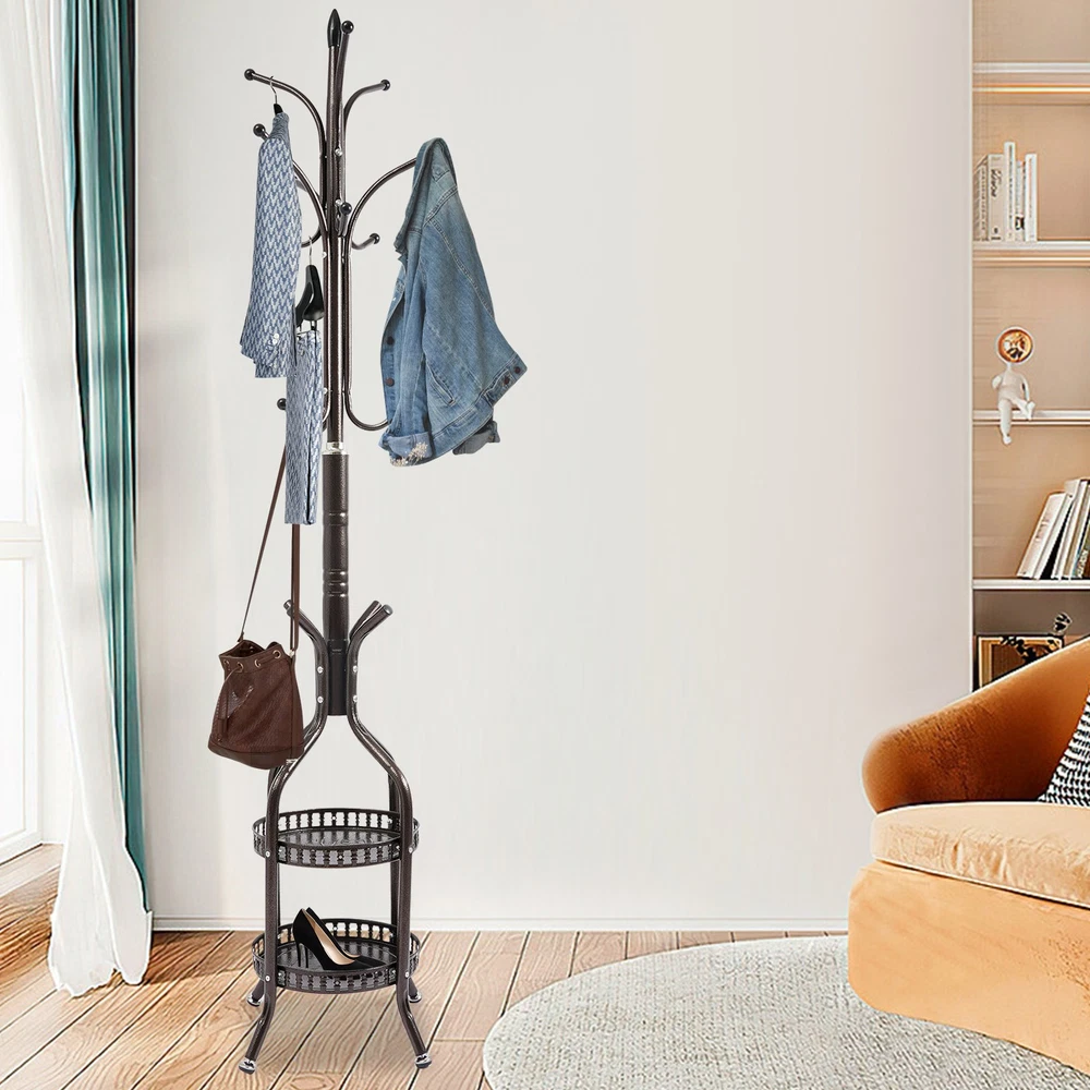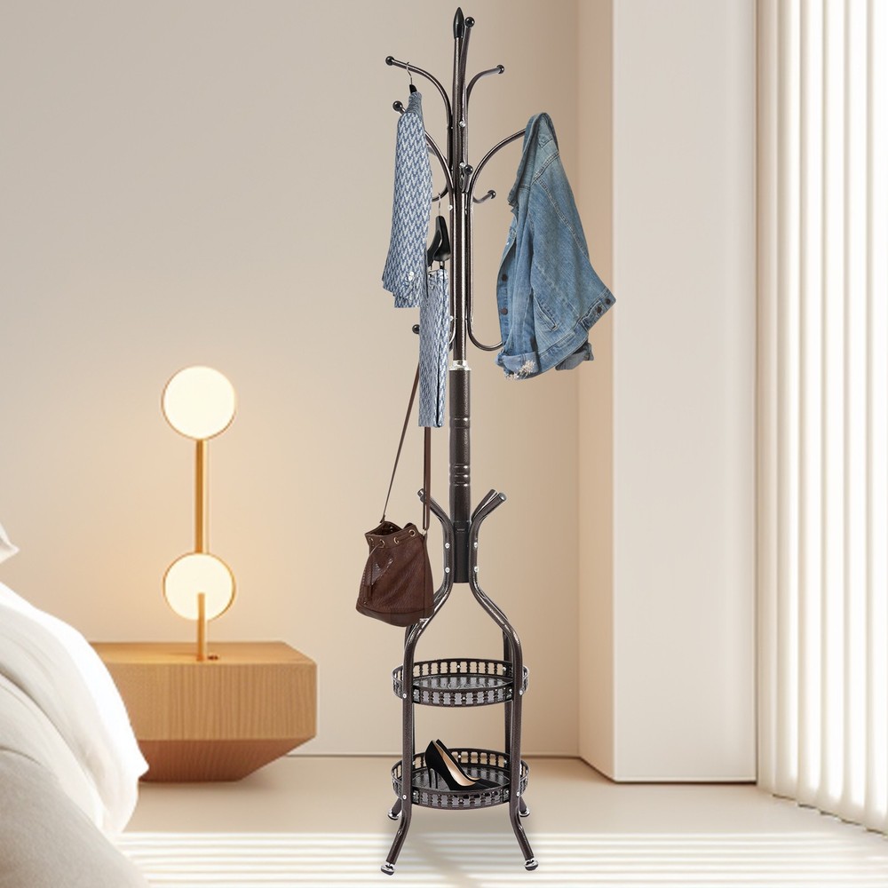 Package Included 1* Coat Hanger Stand 1* Chinese Installation Diagram Other Needed Accessories Description This coat rack combines practicality and artistic beauty. The selection of high-quality materials and fine craftsmanship have built a solid structure and smooth, rounded hanging rod for the product to easily carry your daily coats, hats, and bags. In addition, it is uniquely designed with two shelves underneath, so that home slippers, shoes, umbrellas, shopping bags, and other miscellaneous items can be placed in an orderly manner so that your home space is well organized. Coat Rack Stand Hat Bag Stand Coat Hanger Stand Sturdy High Space Utilization Description This coat rack combines practicality and artistic beauty. The selection of high-quality materials and fine craftsmanship have built a solid structure and smooth, rounded hanging rod for the product to easily carry your daily coats, hats, and bags. In addition, it is uniquely designed with two shelves underneath, so that home slippers, shoes, umbrellas, shopping bags, and other miscellaneous items can be placed in an orderly manner so that your home space is well organized. Key Features High-quality Material: The high-quality iron and the spraying paint process provide the product with corrosion resistance and rust resistance , keeping it practical and glossy for long-term use. Strong Structure: The thickened tubes and sturdy screw connection give the product a strong load-bearing capacity to hold your coats, hats, and other clothes that weighs about 33.07 lbs. Simple Installation: With a simple structure and complete accessories, you can easily and quickly install the product without costing much time and effort. Stylish Appearance: The bronze color and smooth lines give the product an elegant appearance, allowing it to easily blend into different styles of home decor. High Space Utilization: The product takes up only a small amount of floor space, which allows it to be placed anywhere in the room to hang your clothes. Multiple hooks, storage baskets, and a multi-tier design allow it to hang a variety of hats, coats, and short-sleeved clothing and place your umbrellas, shopping bags, and other miscellaneous items, greatly improving the utilization of space. Easy to Clean: The simple structure and smooth surface allow you to easily wipe it clean with a damp cloth (not included). Ideal Gift: The powerful function and stylish appearance make it an ideal housewarming gift for your friends, families, and colleagues. Buy with Confidence: We stand behind all our guests and look forward to assisting you with your purchase. It is our pleasure to answer your confusion and questions. The end of the story between us is not "we sell and you buy". Details Practical Feet: They provide excellent stability while preventing the product from sliding and scratching the floor. Moreover, it can be adjusted to adapt to uneven ground. Smooth Edges: They can protect your hands from getting scratched during installation and daily use. Application It can be used in hallways, bedrooms, living rooms, bathrooms, entryways, foyers, study rooms, children's rooms, laundry rooms, offices, clothing stores, apartments, hotels, dormitories, etc. It can be used to hang coats, scarves, hats, school bags, handbags, purses, suits, garments, and so on. Specifications Color: Bronze Material: Iron Process: Spraying Mount Type: Free Standing Assembly Required: Yes Max. Total Load-bearing Capacity: About 15kg/33.07lbs Product Overall Size: 31*31*185cm/12.2*12.2*72.8in Package Size: 81.3*48.3*6.5cm/32*19.02*2.56in Gross Weight: 4.5kg/9.92lbs Net Weight: 4kg/8.82lbs Package Included 1* Coat Hanger Stand 1* Chinese Installation Diagram Other Needed Accessories Notes 1. Please check the size carefully before ordering. 2. Please allow the slight color difference caused by the shooting light and 1-3cm error due to manual measurement, and make sure you do not mind before you order. Payment Delivery details Terms of sales About us Contact us Payment We accept ebay payment 。 Fees such as import duties, taxes are not included in the item price or shipping costs. These charges are the buyer's responsibility. Delivery details Shipping: 2-9 working days to: USA Terms of sales We maintain high standards of excellence and strive for hundred percent customer satisfaction. Feedback is very important to us. We hope that you contact us immediately before you give neutral or negative feedback, so that we can address your concerns. It is impossible to address issues if we do not know about them! About us Your satis faction is our ultimate goal. We work hard to earn your trust and future business. Our certified technicians have tested each item before shipping. The unit comes with 1 year limited warranty on all manufacturing defects. a) If you receive a defective item, you may return it or ask for a discount. Please contact us within 14 days after you receive the package. b) What you returned must be intact and in its original packaging as re? u. Customer is responsible for shipping costs of the returned item. c) We will cover the cost of shipping back t with the shipping rate indicated in the registration page. We will send you a new unit or refund the full payment you paid. Thank you. Contact us Business Hour Business Hour: Monday To Friday: 8:30 AM to 5:00 PM (Beijing China time) Due to time zones, our reply to your questions may not be immediately. But within above working time, we will reply your email within 24 hours. If it's non-workdays, please kindly be patient and wait till Monday. Please contact us with ebay message. Please feel free to contact us if you have any questions. Monday To Friday: 8:30 AM to 5:00 PM (Beijing China time) Due to time zones, our reply to your questions may not be immediately. But within above working time, we will reply your email within 24 hours. If it's non-workdays, please kindly be patient and wait till Monday. Please contact us with ebay message. Ple