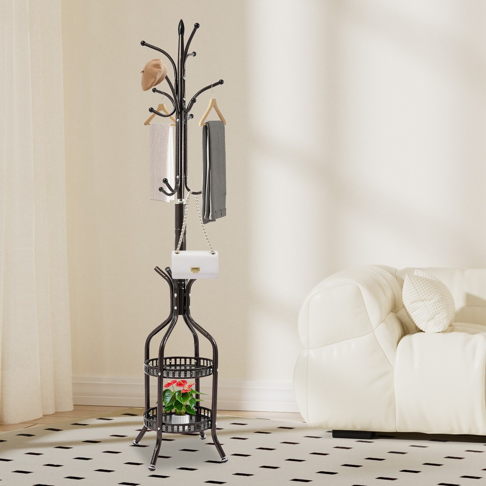Iron Tree Coat Rack with 7 Hooks for Hats Bags Clothes 68.11 Inches Tall