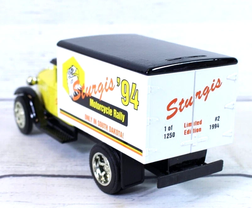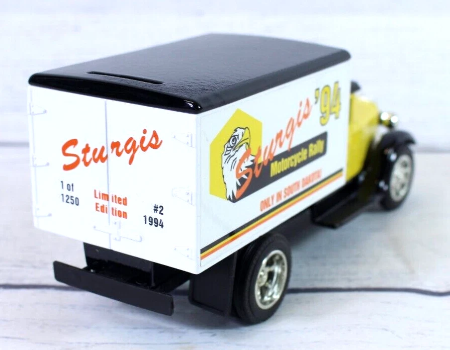 Sturgis 94 Motorcycle Rally ERTL American Classic Delivery Truck Bank Welcome to Our Store! Your Satisfaction, Our Goal: We're thrilled to have you here! Our mission is to make your shopping experience delightful from start to finish. If you have any questions or concerns, please let us know, and we'll do our best to assist you. Quick and Secure Shipping: Your eagerness is our priority! Most orders embark on their journey within 1-2 business days of payment. We'll make sure your items are carefully packaged for a safe and speedy arrival. Positivity Reigns: We're not just about products; we're about spreading good vibes! Join our community of positivity enthusiasts by sharing your thoughts and experiences. Your feedback keeps the good karma flowing! Connect with Us: We're here to chat, answer questions, or simply have a friendly exchange. Reach out through eBay's messaging system, and we'll be thrilled to engage with you! Thank you for choosing us. Your support lights up our shop! No Return Policy: We're committed to offering quality products and excellent service. However, please note that we currently have a no return policy in place for this item. We strive to accurately represent our items through detailed descriptions and images to ensure your satisfaction with your purchase. If you have any concerns about your order, please reach out to us, and we'll be more than happy to address any issues or questions you might have.