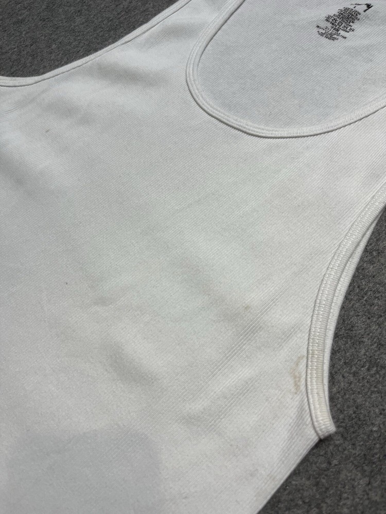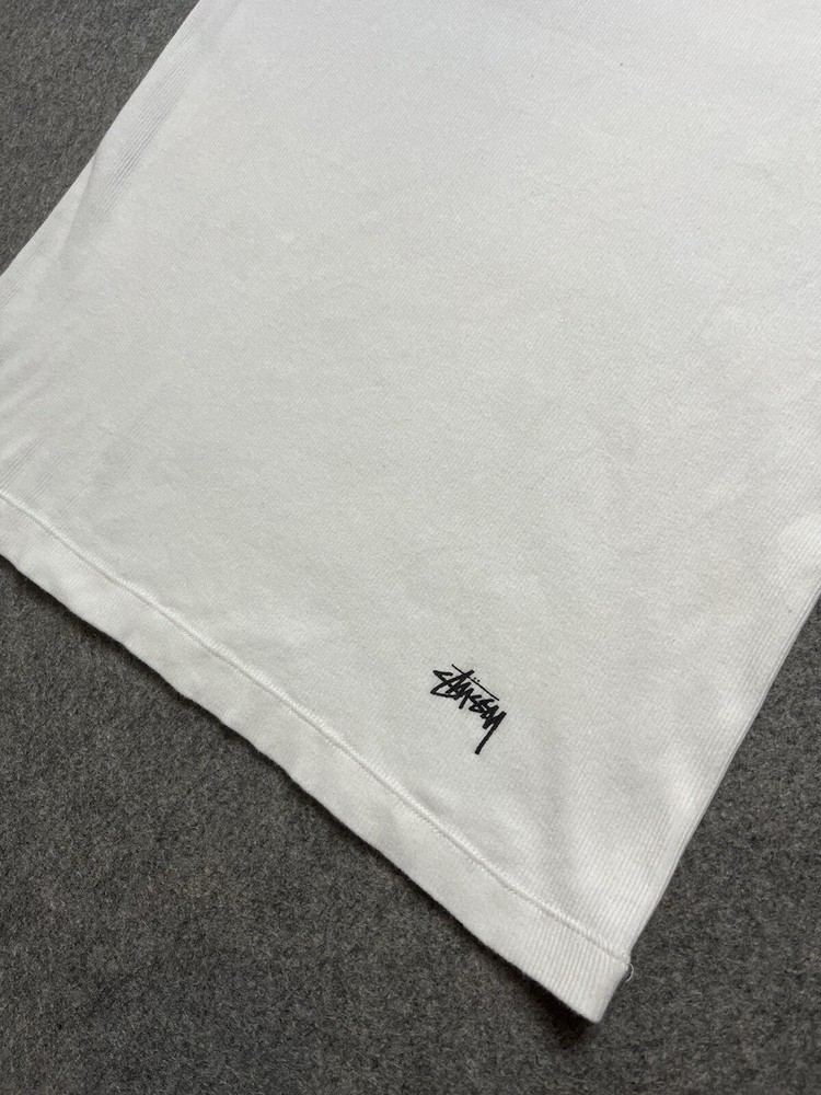 Color:WhiteFeatures:All SeasonsVintage:NoSleeve Length:SleevelessCountry/Region of Manufacture:MexicoSize Type:RegularTheme:Designer, Hip HopPattern:SolidFit:RegularType:T-ShirtDepartment:MenBrand:StussyMaterial:CottonSize:L