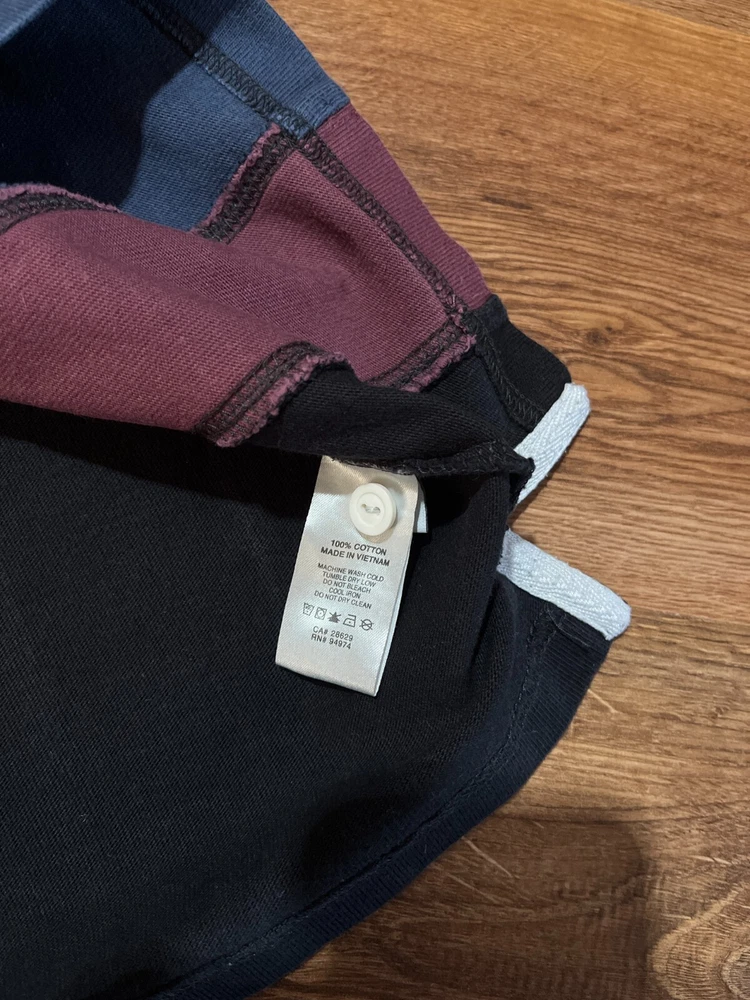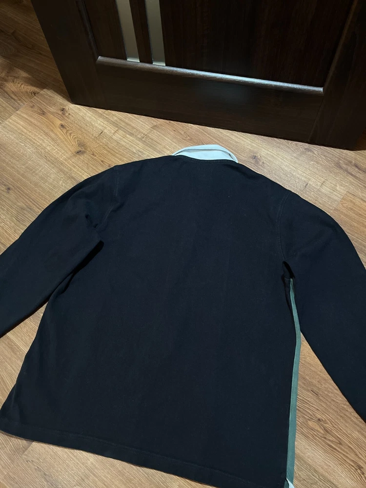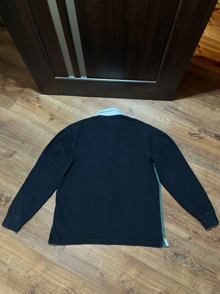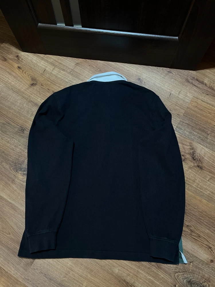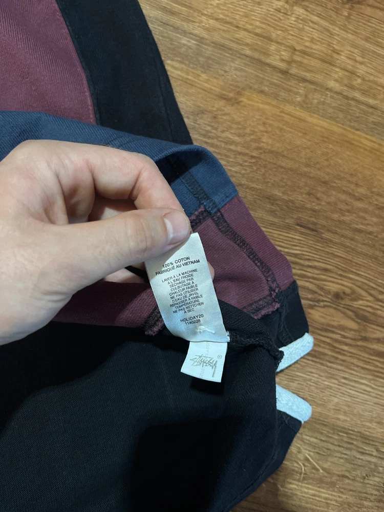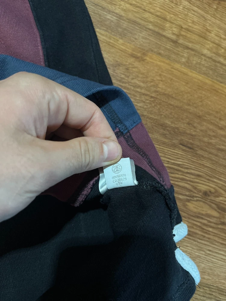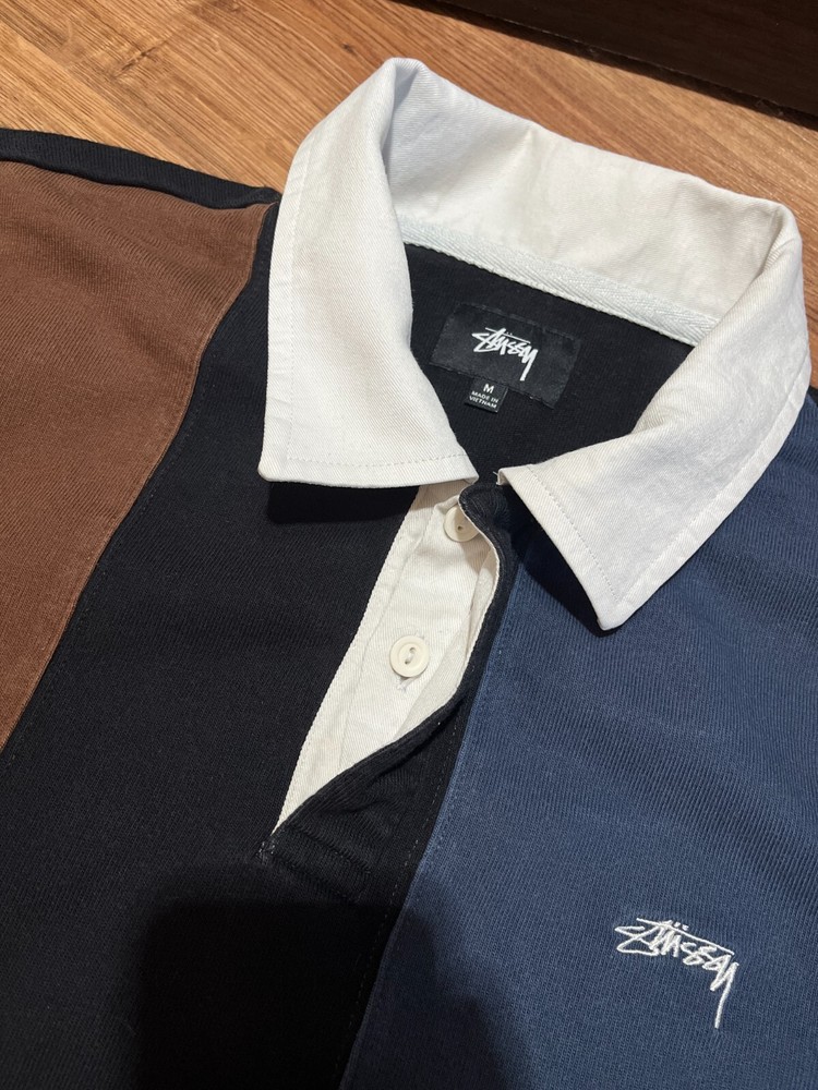 Performance/Activity: Rugby Size Type: Regular Type: Polo Sleeve Length: Long Sleeve Neckline: Collared Fit: Regular Material: Cotton Pattern: Striped Color: Black Size: M Department: Men Season: Fall, Spring, Summer Country/Region of Manufacture: Vietnam Brand: Stussy
