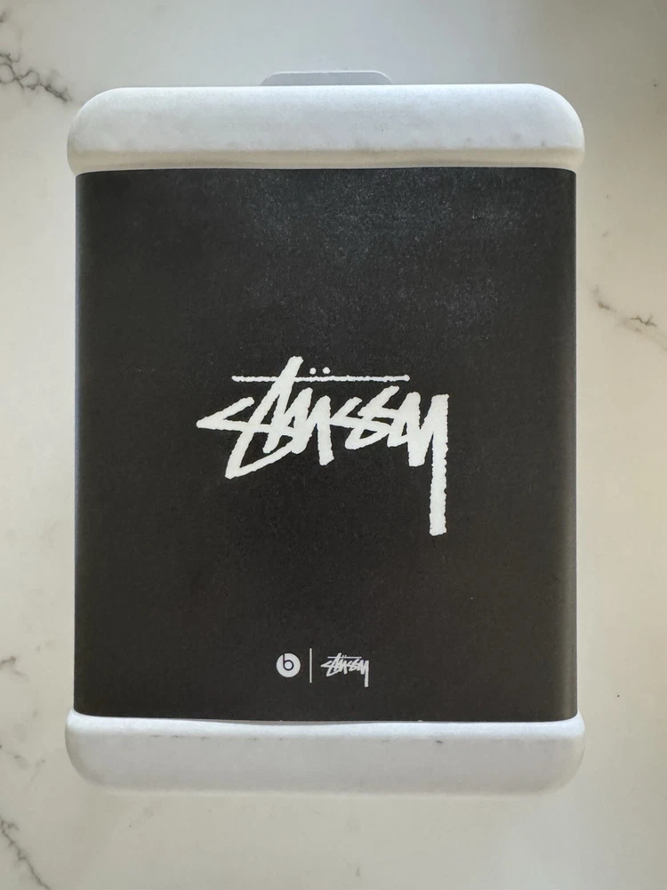 The Stussy x Beats Studio Pro is a collaboration between Stüssy and Beats by Dr. Dre, offering a stylish and high-quality headphone experience. This model features ear-cup design with double earpieces in a sleek white and black color combination. Connectivity options include Bluetooth, 3.5mm Jack, and USB-C, providing versatility for different devices. The Beats by Dr. Dre Powerbeats Pro is known for its premium sound quality and ergonomic design, ensuring a comfortable fit for extended listening sessions. This limited edition collaboration adds a touch of streetwear style to the renowned Beats Studio Pro line.