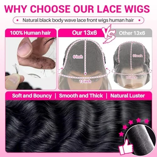 Human Hair Lace Front Wigs Material: 100% unprocessed 10A grade Brazilian virgin human hair wigs for black women, cut from healthy young female head directly, healthy and bouncy, soft and smooth, full and thick, natural luster and color. 30 inch Lace Front Wig Human Hair Quality: 180% density 13x6 body wave lace front wigs human hair pre plucked with natural hairline. True to length & weight, no smell, no split ends, no shedding, tangle free. Body wave human hair wig can be straightened, curled, bleached, dyed, permed and styled as like your own hair. Frontal Wigs Human Hair 13x6 Detail: 6 inch parting space supports middle part, side part and free part. Ear to ear 13x6 large lace size can make high ponytail & bun, enough baby hair around, looks really natural and attractive when take it on. HD transparent Swiss lace melts most skin well, lightly bleached knots, breathable & durable. HD Lace Frontal Wig 13x6 Cap Size: Beginner friendly, 22.5 inch medium cap size, 5D dome full elastic breathable cap, 4 combs, 2 adjustable straps and one removable elastic band that ensure everyone can enjoy the perfect fit without having to worry about the cap being too tight or uncomfortable. Perfect for Any Occasion: 13x6 HD lace front wigs human hair suit for your daily, party, birthday, graduation, travel, wedding, etc. It also is a gift for your family and friends. Blossom your beauty and self-confidence. Any questions about our human hair wigs, we will solve it for you in time.