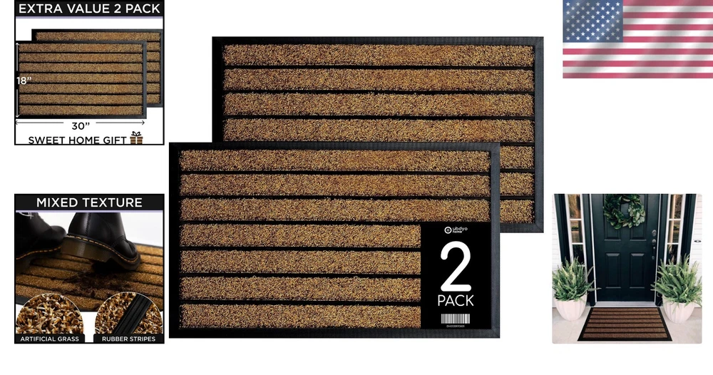 Stylish 2 Pack Waterproof Doormat Set - 30'' x 18'' for Indoor & Outdoor Use ‹ › ‹ › ‹ › ‹ › ‹ › ‹ › ‹ › ‹ › ‹ › Stylish 2 Pack Waterproof Doormat Set Dimensions: 30'' x 18'' for Indoor & Outdoor Use Features: Efficient dirt collection with rubber stripes and artificial grass to trap dust and debris from shoes. Designed to keep your floors clean, dry, and safe with a sturdy rubber backing that prevents slipping. Versatile size (30”x18”) and low profile (0.4”) to seamlessly fit under any door without getting stuck. Easy to maintain—simply spray water to clean or toss in the wash for a fresh look. Add a stylish touch to your home décor while providing practicality and protection at your entrances. Benefits: Say goodbye to constant cleaning with a doormat that efficiently collects dirt and mud. Ensure safety and cleanliness with a non-slip design perfect for high traffic areas. Enhance the beauty of your home while offering a welcoming atmosphere for guests. Seamless fit for back doors, laundry rooms, garage entryways, and other entry points. Quick and hassle-free cleaning process keeps your doormats looking fresh year-round. Why choose our Waterproof Doormat Set? Transform your home into a stylish sanctuary with our Stylish 2 Pack Waterproof Doormat Set. The dual functionality not only enhances your entrance but also works tirelessly to keep your home clean and welcoming. Featuring a smart blend of rubber stripes and artificial grass, these doormats promise to capture dirt and moisture, preventing it from being tracked inside. Designed for practicality, will fit seamlessly at any door, ensuring no awkward catches. Plus, the easy cleaning maintenance means you spend less time tidying up and more time enjoying your elegant space. Elevate your home today with these essential door mats and make a lasting impression on your guests! Shipping Free & Fast Shipping - We offer free shipping to most of the USA with a normal delivery time of 3-7 days. However, due to the current situation, additional delivery time (up to 3 weeks) may be required for some items. Alternative Carriers - We may use alternative carriers (e.g. USPS, FedEx, UPS, etc.) to ensure your package arrives safely and on time. Due to the use of multiple carriers, we are unable to provide a tracking number automatically. Handling Time - Orders are processed and shipped within 1-2 business days of receiving cleared payment. Shipping Restrictions - Shipping to Alaska, Hawaii, Puerto Rico, Guam, and other US territories may incur shipping charges or delivery restrictions. Please contact us before ordering, or your order can be refunded/cancelled. State Restrictions - There may be restrictions based on your state of purchase. For example, certain items may not be shipped to California due to state regulations. Contact for Tracking Updates - If you require tracking updates or have any concerns about the delivery of your order, please feel free to contact us, and we will be happy to assist you. Return 30-Day Hassle-Free Returns - We want you to be completely satisfied with your purchase. If you are not, you can return the item within 30 days of receiving it for a full refund or exchange. Easy Return Process - To start a return, simply contact us and we will provide you with a prepaid return shipping label and detailed instructions. Restocking Fee - There are no restocking fees for returns. However, the buyer is responsible for return shipping costs if the return is not due to a seller's error. Refund Processing Time - Refunds will be processed within 5 business days of receiving the returned item in its original condition. Payment We accept all major credit cards, PayPal, and Apple Pay for your convenience. Your payment information is secure and encrypted to ensure a safe and seamless transaction. Please complete your payment within 3 days of purchase to avoid any delays in shipping. Feedback Your feedback is extremely important to us. We strive to provide the best products and customer service possible. If you are satisfied with your purchase, please take a moment to leave us a positive review. If you have any concerns or issues with your order, please contact us before leaving negative feedback. We are committed to resolving any problems and ensuring your satisfaction. Contact Us If you have any questions or concerns, please feel free to reach out to our customer support team. You can contact us through the eBay messaging system. We are available Monday to Friday, 9:00 am to 5:00 pm EST, and we will do our best to respond to your inquiry within 24 hours. Buy it now and enjoy a pleasant shopping experience! UPC: Not Set Unit Quantity: 6.14 lb Room: Any Room,Hallway,Living Room,Home Office Material: Rubber,Polypropylene Features: Easy to Clean,Non-Slip,Stain Resistant,Moisture Barrier,Non Slip,Washable Department: Adults Theme: Occasion, Welcome Brand: Unbranded Type: Doormat Color: Bright Brown Pattern: Striped Shape: Rectangle Item Width: Not Set Item Length: 30 in MPN: Not Set Model: Not Set Size: 30 in x 18 in Style: Modern Pile Height: Low Pile Regional Design: Not Set Country/Region of Manufacture: Not Set Pile Type: Low Pile Weave: Machine-Woven Era: 21st Century (2000-Now) Unit Type: lb Personalize: Not Set Personalized: Not Set