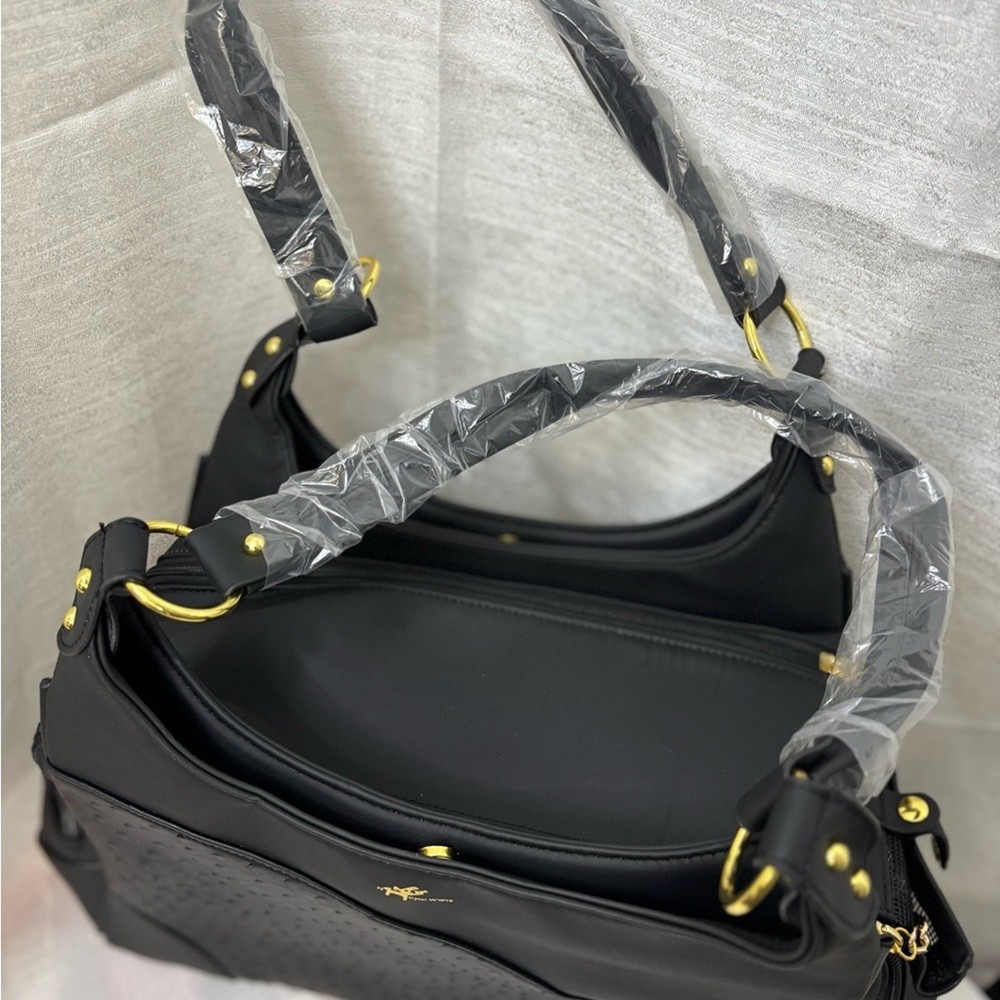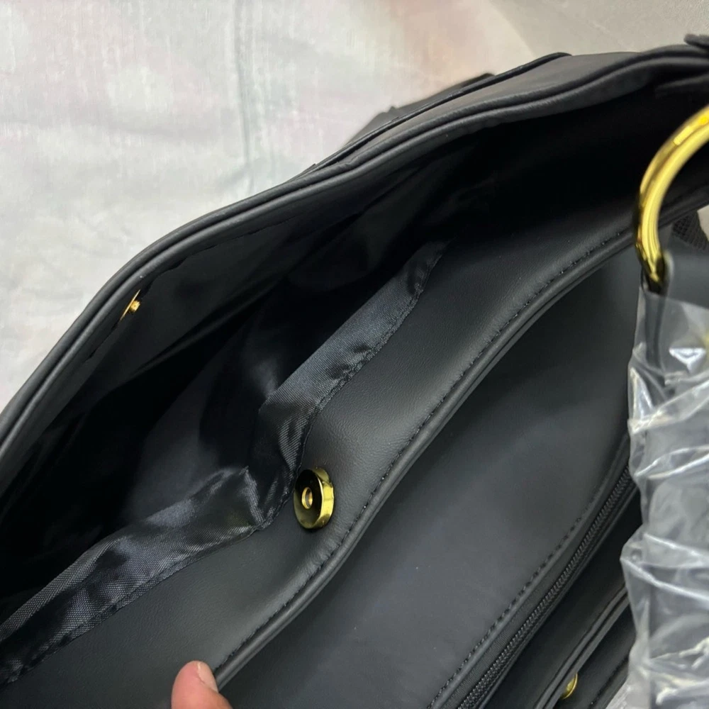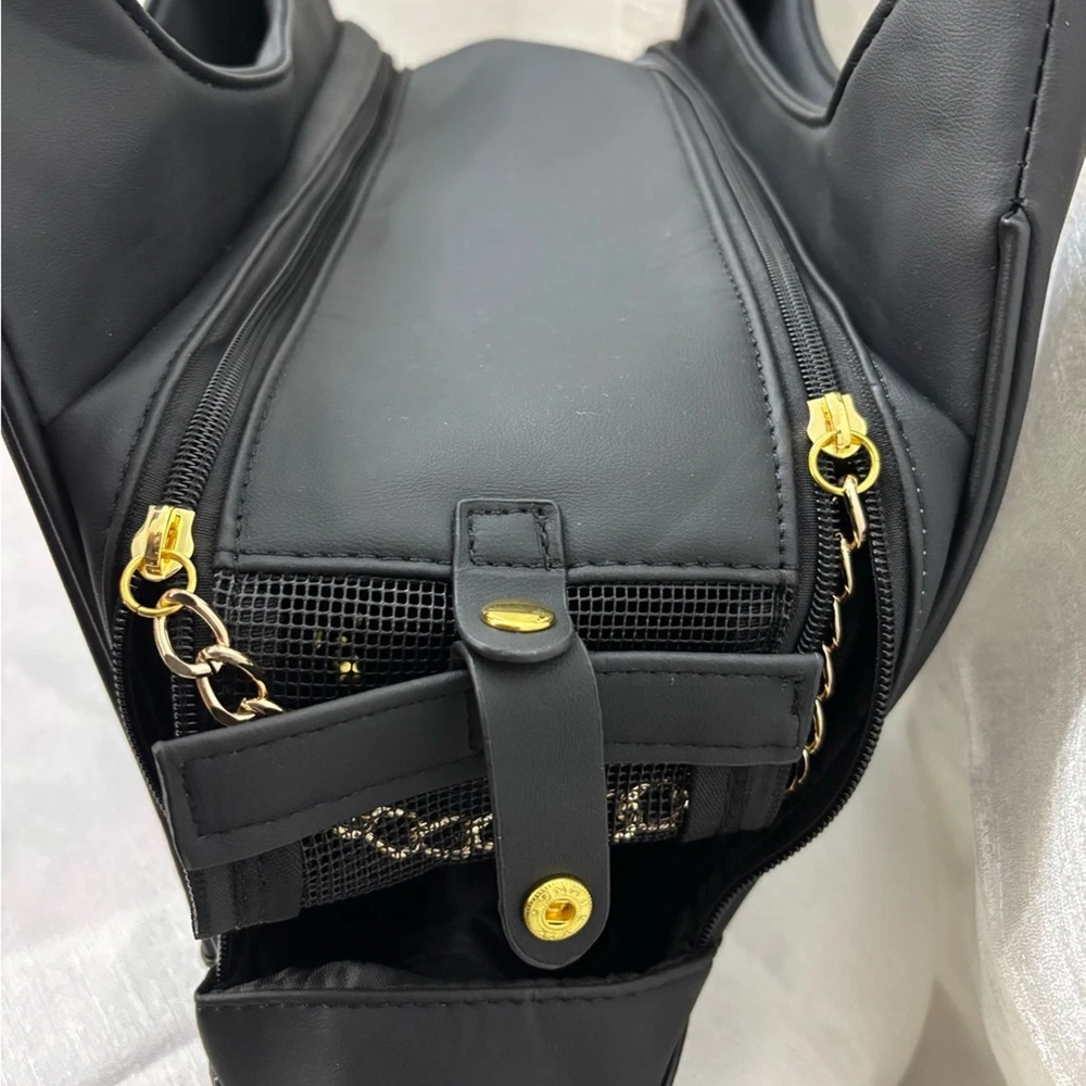 This elegant black pet carrier handbag is perfect for any occasion. Its sleek design and versatile color make it a must-have accessory. Brand New