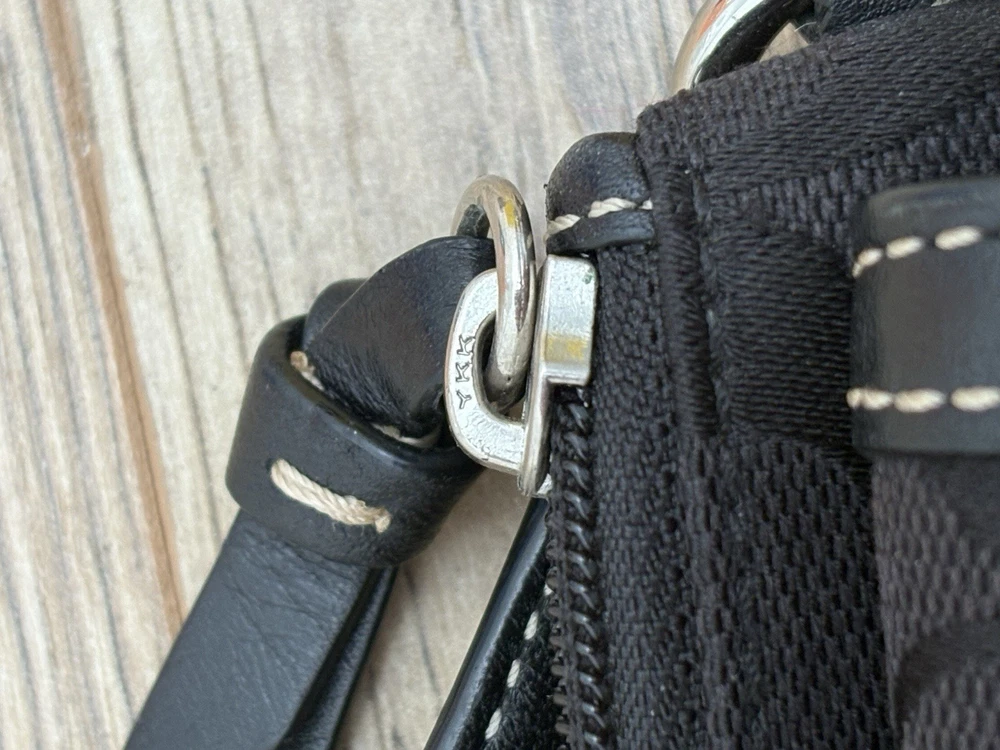Product Line: Coach Outlet Features: Inner Pockets Personalize: No Theme: Designer Brand: Coach Accents: Zipper Exterior Color: Black Handle/Strap Color: Black Handle/Strap Material: Leather Fabric Type: Rayon Closure: Zip Lining Material: Fabric Size: Small Hardware Color: Silver Lining Color: Black Country/Region of Manufacture: China Handmade: No Shape: Rectangle Department: Women Exterior Material: Leather Style: Belt Bag & Fanny Pack Vintage: No