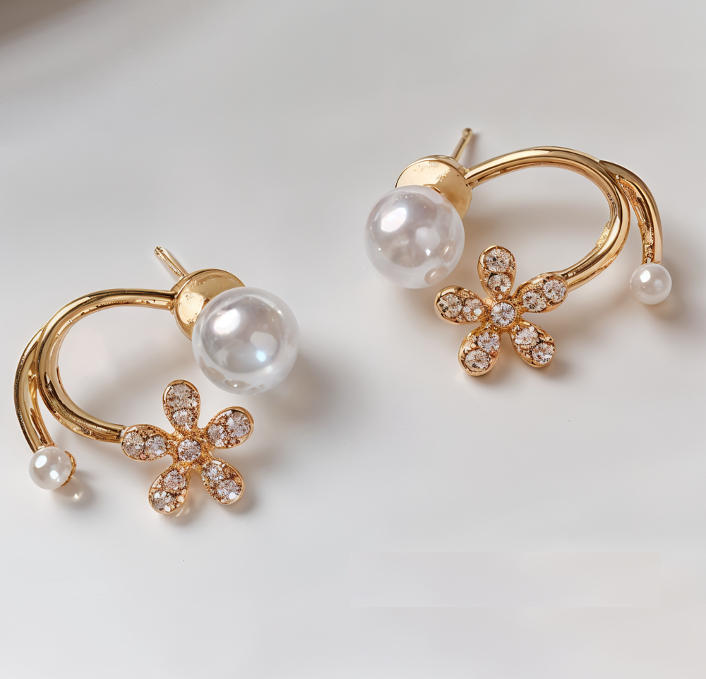 Add a charming floral touch to your accessory collection with these Flower Earrings for Girls/Women . Featuring a delicate flower design adorned with sparkling cubic zirconia stones, these cuff earrings are crafted from high-quality alloy for durability and shine. The cuff style adds a modern twist to a classic design, making them perfect for both casual and formal occasions. Whether you're dressing up for a party or adding elegance to your everyday look, these earrings are a must-have. Features: Beautiful Flower Design : Elegant flower-shaped earrings with sparkling cubic zirconia accents. High-Quality Alloy : Crafted from durable alloy for a long-lasting, polished finish. Cuff Earring Style : Trendy cuff design that offers a modern twist on classic floral earrings. Sparkling Cubic Zirconia : Adds brilliant sparkle to enhance your look. Comfortable & Lightweight : Designed for all-day wear without discomfort. Specifications: Material: Alloy, Cubic Zirconia Style: Cuff Earrings Design: Flower Gender: Women & Girls Occasion: Party, Wedding, Casual, Formal Package Includes: 1 Pair of Flower Cuff Earrings Why Choose These Earrings? These flower cuff earrings combine timeless elegance with a contemporary design. Whether you're treating yourself or looking for the perfect gift, these earrings will add a touch of sparkle and style to any outfit. Order now and step up your jewelry game!