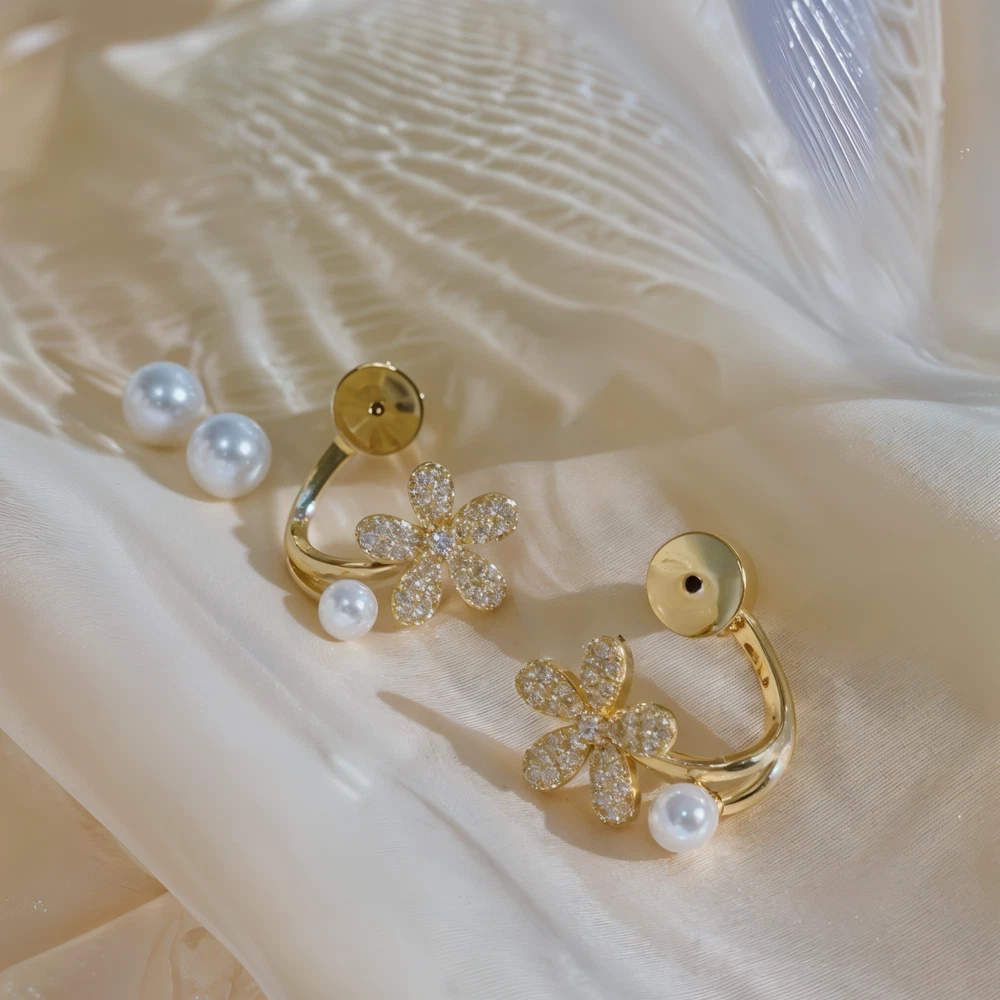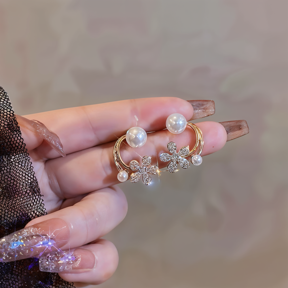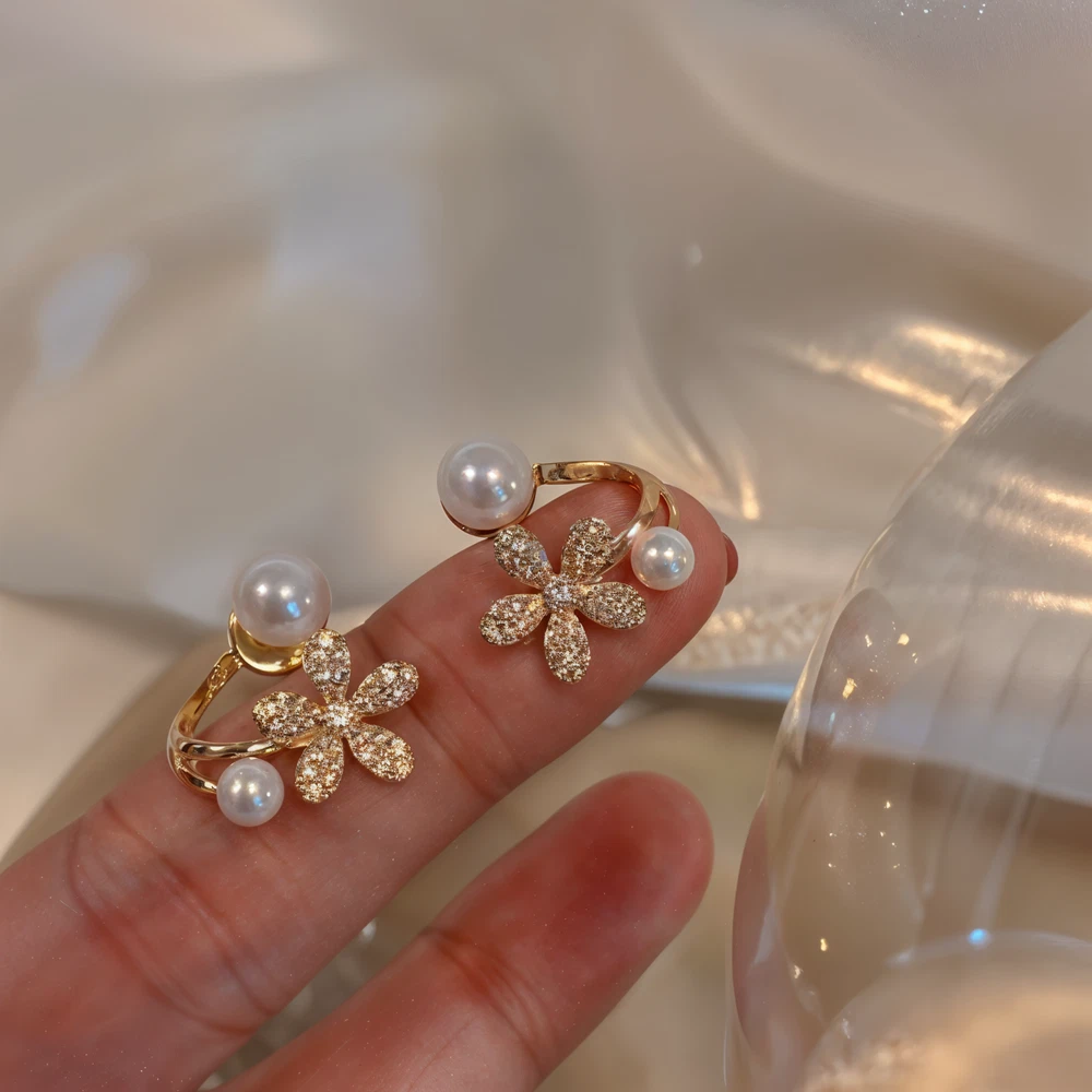 Stylish Cubic Zirconia Alloy Flower Cuff Earrings for Women and Girls