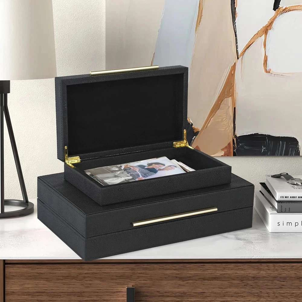 Stylish Faux Leather Nesting Keepsake Boxes Set of 2 for Home Decor