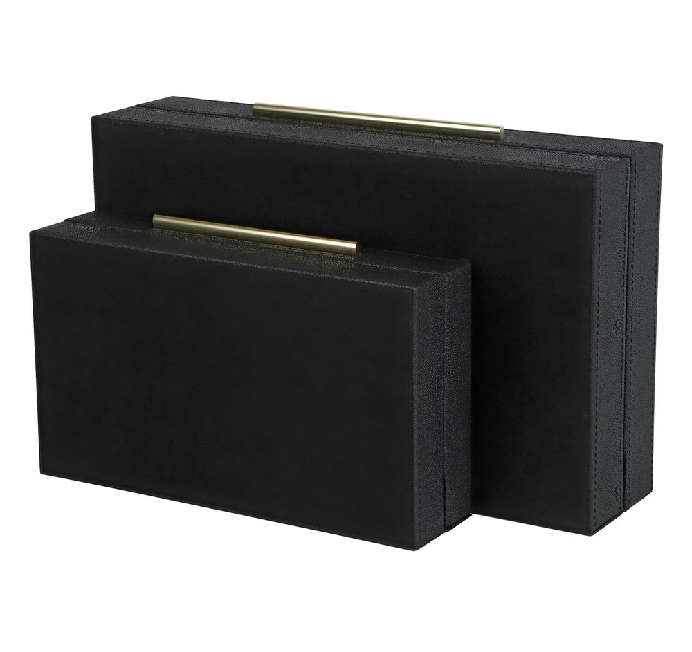UPC: Does not apply Item Shape: Rectangular Assembly Instructions: Already Assembled Part Number: Decorative Box Model Number: Decorative Box Brand: Hofferruffer Closure Type: Flip Top Color: Black Number Of Boxes: 1 Material Feature: Soft To The Touch gtin13: Does not apply Opening Mechanism: Hinge Weight: 5.6 Pounds Package Dimensions LxWxH: 15.12x10.55x4.61 Inches Storage Volume: 7152.0 Item Package Quantity: 1 Model Name: Decorative Box Included Components: Decorative Box With Hinged Ld Type: Does not apply Unit Count: 2.0 Capacity: 7152.0 Style: Modern Material: Faux Leather Decorative Box
