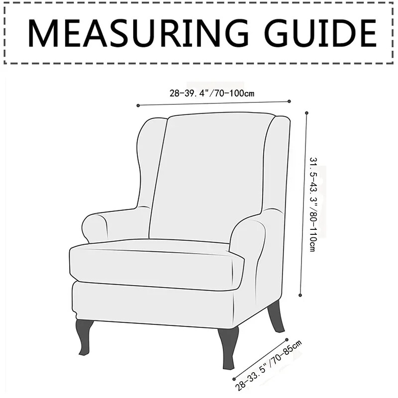 Features: MATERIAL - Wing chair cover is made of high stretch polyester and spandex printed fabric, breathable and comfort while you seat and ensuring good function as well. PROTECT & USAGE - Not only will our wing back arm chair cover protect your wing chair from accidental dirt like biscuit crumbs and daily wear and tear, but it is also a great choice for homes with children and pets. HOME DECOR - The beautiful chair cover save you money by extending the life of your sofa. Elegant pattern gives your chair a new look. EASY TO INSTALL & CARE - easy on and easy off. Machine washable, separately in cold water on the gentle cycle, do not use bleach. NOTE - Please measure your wing chair in advance and compare it to our size. Package include: Wing chair cover*1SET(Wing chair cover*1pc, Cushion cover*1pc)or Footstool Cover*1pc
