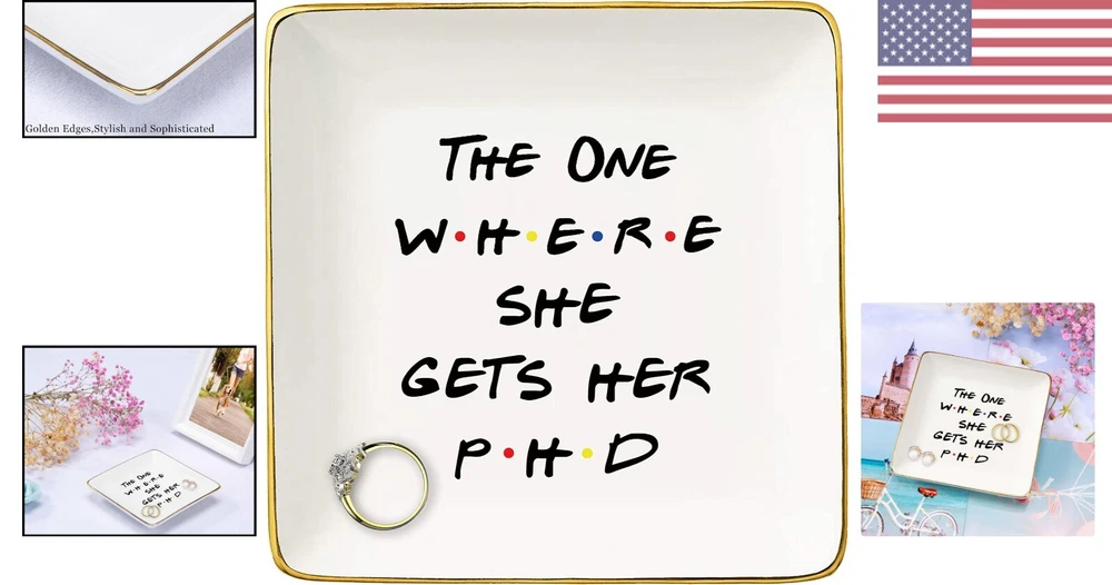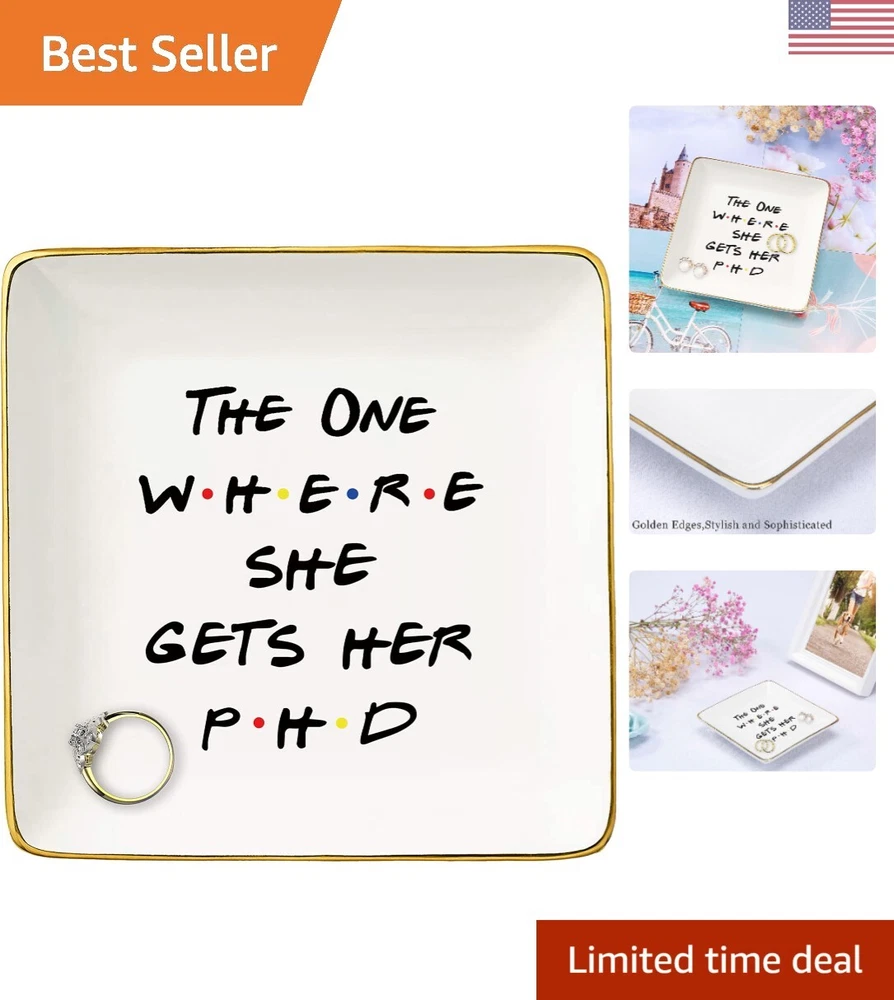 Stylish Glazed Ceramic Ring Dish for Graduation Gift - Elegant Jewelry Holder ‹ › ‹ › ‹ › ‹ › ‹ › ‹ › ‹ › ‹ › ‹ › Stylish Glazed Ceramic Ring Dish -Elegant Jewelry Holder Features: Perfect size: 4"L x 4"W x 0.8"H Exquisite and safety packaging High quality craft with text fired at high temperature Crafted from high quality glazed white ceramic with golden edge Multi-scenario use for various festive gifts Benefits: Keeps rings, earrings, bracelet, necklace, and cosmetics organized Stylish and elegant design Great gift idea for colleagues, family, friends, women, or girls Memorable trinket jewelry dish Text will not fade in long term use Why choose our Stylish Glazed Ceramic Ring Dish? Looking for a stylish and elegant way to organize your jewelry and cosmetics? Our Glazed Ceramic Ring Dish is the perfect solution. Crafted from high quality ceramic with a golden edge, this dish is not only functional but also adds a touch of sophistication to any space. The fired text ensures durability, so you can use it for years to come without worrying about fading. Whether you're looking for a thoughtful gift for a loved one or simply want to treat yourself, our ring dish is the perfect choice. Don't miss out on this must-have accessory - order yours today! Shipping Free & Fast Shipping - We offer free shipping to most of the USA with a normal delivery time of 3-7 days. However, due to the current situation, additional delivery time (up to 3 weeks) may be required for some items. Alternative Carriers - We may use alternative carriers (e.g. USPS, FedEx, UPS, etc.) to ensure your package arrives safely and on time. Due to the use of multiple carriers, we are unable to provide a tracking number automatically. Handling Time - Orders are processed and shipped within 1-2 business days of receiving cleared payment. Shipping Restrictions - Shipping to Alaska, Hawaii, Puerto Rico, Guam, and other US territories may incur shipping charges or delivery restrictions. Please contact us before ordering, or your order can be refunded/cancelled. State Restrictions - There may be restrictions based on your state of purchase. For example, certain items may not be shipped to California due to state regulations. Contact for Tracking Updates - If you require tracking updates or have any concerns about the delivery of your order, please feel free to contact us, and we will be happy to assist you. Return 30-Day Hassle-Free Returns - We want you to be completely satisfied with your purchase. If you are not, you can return the item within 30 days of receiving it for a full refund or exchange. Easy Return Process - To start a return, simply contact us and we will provide you with a prepaid return shipping label and detailed instructions. Restocking Fee - There are no restocking fees for returns. However, the buyer is responsible for return shipping costs if the return is not due to a seller's error. Refund Processing Time - Refunds will be processed within 5 business days of receiving the returned item in its original condition. Payment We accept all major credit cards, PayPal, and Apple Pay for your convenience. Your payment information is secure and encrypted to ensure a safe and seamless transaction. Please complete your payment within 3 days of purchase to avoid any delays in shipping. Feedback Your feedback is extremely important to us. We strive to provide the best products and customer service possible. If you are satisfied with your purchase, please take a moment to leave us a positive review. If you have any concerns or issues with your order, please contact us before leaving negative feedback. We are committed to resolving any problems and ensuring your satisfaction. Contact Us If you have any questions or concerns, please feel free to reach out to our customer support team. You can contact us through the eBay messaging system. We are available Monday to Friday, 9:00 am to 5:00 pm EST, and we will do our best to respond to your inquiry within 24 hours. Thank you for supporting our small family business!
