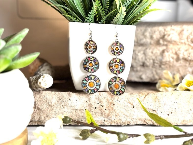 These Bohemian-themed earrings are designed to add a stylish touch to any outfit.