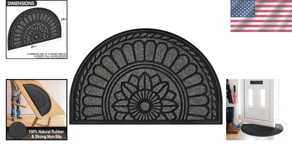 Stylish Gray Half Circle Doormat - Low-Profile Rubber Mat for High Traffic Areas ‹ › ‹ › ‹ › ‹ › ‹ › ‹ › ‹ › ‹ › ‹ › Stylish Gray Half Circle Doormat -Low-Profile Rubber Mat for High Traffic Areas Features: Made from 100% natural rubber, ensuring eco-friendly, odor-free durability. Enhanced polypropylene fiber technology for strength and longevity, perfect for all-around versatility. Strong rubber beveled border forms a retention dam to trap moisture, mud, and debris. Low-profile design of 24 x 36 inches, ideal for low-clearing doors and entryways. Raised anti-slip backing, ensuring stability and safety for kids and pets. Suitable for various spaces including indoor, outdoor, kitchens, garages, and patios. Benefits: Durable and safe material, perfect for high-traffic areas in your home. Efficient dirt capture with well-draining capabilities, protecting your floors from messes. Non-slip grip enhances safety for pets and children. Versatile use for any location where foot traffic is prevalent. Easy to maintain with simple cleaning methods - vacuum, shake, or rinse. Why choose our Stylish Gray Half Circle Doormat? Transform your entryway with the perfect blend of style and functionality. Our Stylish Gray Half Circle Doormat is the ultimate solution to keep your living space pristine. Crafted from eco-friendly materials, it offers not just durability, but also a safe environment for your loved ones. The thoughtful design captures unwanted debris before it enters your home while keeping feet stable and secure. Its versatility allows it to complement any room, from the busy kitchen to the elegant patio. Enjoy hassle-free cleaning and a refined look that beckons visitors with its chic gray tones. Upgrade your entrance today with this must-have decorative accessory and experience the blend of elegance and practicality like never before! Shipping Free & Fast Shipping - We offer free shipping to most of the USA with a normal delivery time of 3-7 days. However, due to the current situation, additional delivery time (up to 3 weeks) may be required for some items. Alternative Carriers - We may use alternative carriers (e.g. USPS, FedEx, UPS, etc.) to ensure your package arrives safely and on time. Due to the use of multiple carriers, we are unable to provide a tracking number automatically. Handling Time - Orders are processed and shipped within 1-2 business days of receiving cleared payment. Shipping Restrictions - Shipping to Alaska, Hawaii, Puerto Rico, Guam, and other US territories may incur shipping charges or delivery restrictions. Please contact us before ordering, or your order can be refunded/cancelled. State Restrictions - There may be restrictions based on your state of purchase. For example, certain items may not be shipped to California due to state regulations. Contact for Tracking Updates - If you require tracking updates or have any concerns about the delivery of your order, please feel free to contact us, and we will be happy to assist you. Return 30-Day Hassle-Free Returns - We want you to be completely satisfied with your purchase. If you are not, you can return the item within 30 days of receiving it for a full refund or exchange. Easy Return Process - To start a return, simply contact us and we will provide you with a prepaid return shipping label and detailed instructions. Restocking Fee - There are no restocking fees for returns. However, the buyer is responsible for return shipping costs if the return is not due to a seller's error. Refund Processing Time - Refunds will be processed within 5 business days of receiving the returned item in its original condition. Payment We accept all major credit cards, PayPal, and Apple Pay for your convenience. Your payment information is secure and encrypted to ensure a safe and seamless transaction. Please complete your payment within 3 days of purchase to avoid any delays in shipping. Feedback Your feedback is extremely important to us. We strive to provide the best products and customer service possible. If you are satisfied with your purchase, please take a moment to leave us a positive review. If you have any concerns or issues with your order, please contact us before leaving negative feedback. We are committed to resolving any problems and ensuring your satisfaction. Contact Us If you have any questions or concerns, please feel free to reach out to our customer support team. You can contact us through the eBay messaging system. We are available Monday to Friday, 9:00 am to 5:00 pm EST, and we will do our best to respond to your inquiry within 24 hours. Buy it now and enjoy a pleasant shopping experience! UPC: Not Set Unit Quantity: 4.79 Room: Any Room,porch,entryway,kitchen,bathroom,garage,patio,store Material: natural rubber,polypropylene Features: Non-Slip,durable,water resistant,eco friendly,heavy duty,low-profile,trap moisture,indoors and outdoors suitable,easy to clean Department: Kids,Teens,Adults Theme: Nature Brand: Unbranded Type: Doormat Color: Gray Pattern: Circles Shape: Half-Round Item Width: Not Set Item Length: Not Set MPN: Not Set Model: Not Set Size: 24 x 36 in Style: Modern Pile Height: Low Regional Design: Not Set Country/Region of Manufacture: Not Set Weave: Hand-Woven Pile Type: Low Era: 21st Century (2000-Now) Unit Type: lb Personalize: Not Set Personalized: Not Set