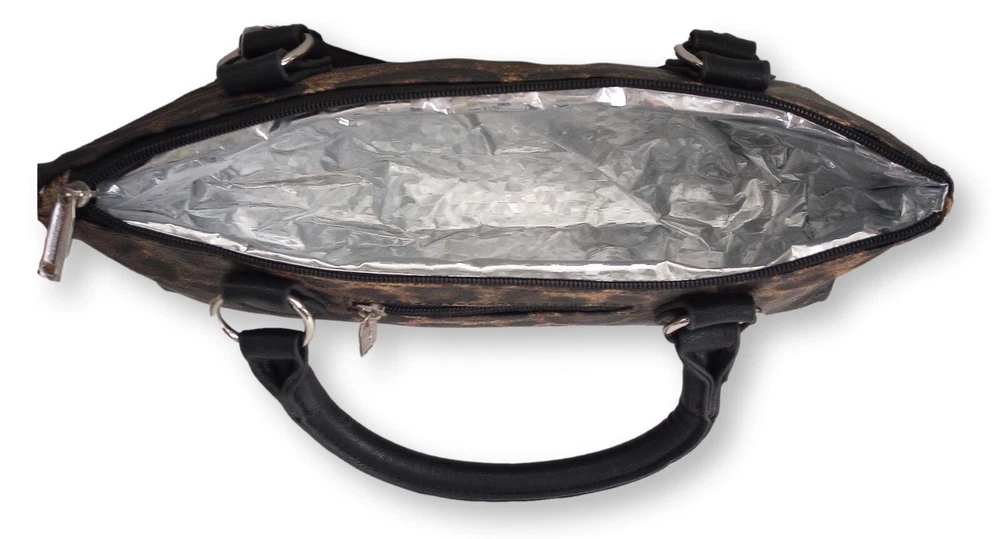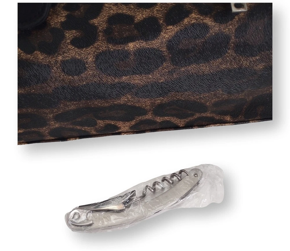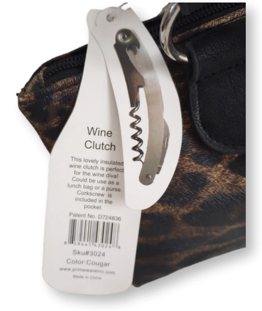 Description: Elevate your wine-carrying experience with this fashionable and functional insulated tote bag. Featuring a captivating leopard cougar print, this tote combines style and practicality, making it the perfect accessory for picnics, parties, or outdoor gatherings. Insulated Interior: Keeps your wine bottles chilled for hours, ensuring your drinks stay perfectly refreshing. Stylish Leopard Cougar Design: Adds a touch of wild elegance to your outfit. Versatile Tote: Can be carried by the handles or as a shoulder bag. Durable Construction: Made from high-quality materials for long-lasting use. Spacious Interior: Holds multiple wine bottles or other beverages. Perfect for Picnics and Parties: Ideal for outdoor events and gatherings. Add a touch of style and convenience to your next outing with this insulated wine tote bag. Order yours today! Wine Bottle Clutch Thermal Insulated Interior Rich, Textured Exterior Trendy, Cougar pattern Front Zippered Pocket Holds One 750mL Wine Bottle Dimensions: 14"W x 3.5"D x 6"H Includes Waiter-Style Corkscrew Thermal Insulation This stylish wine clutch bag also features an insulated interior to keep your favorite wine or beverage the ideal chilled temperature when traveling.