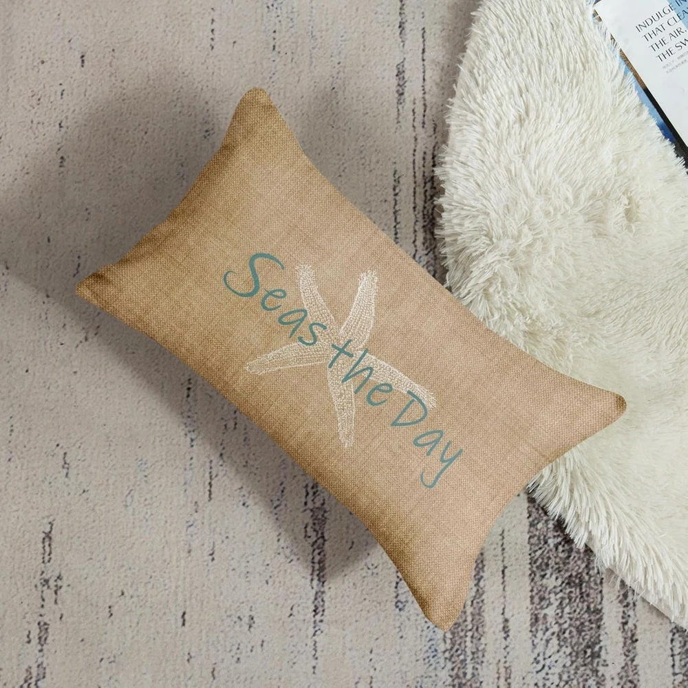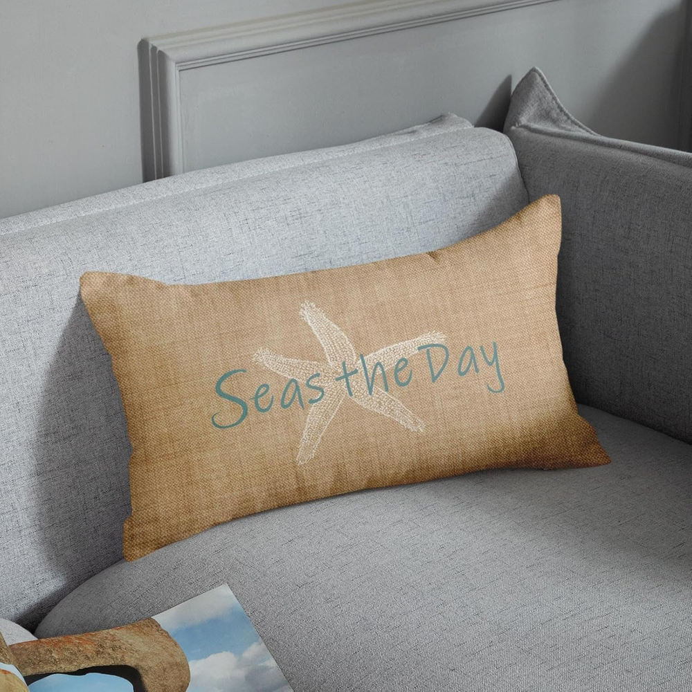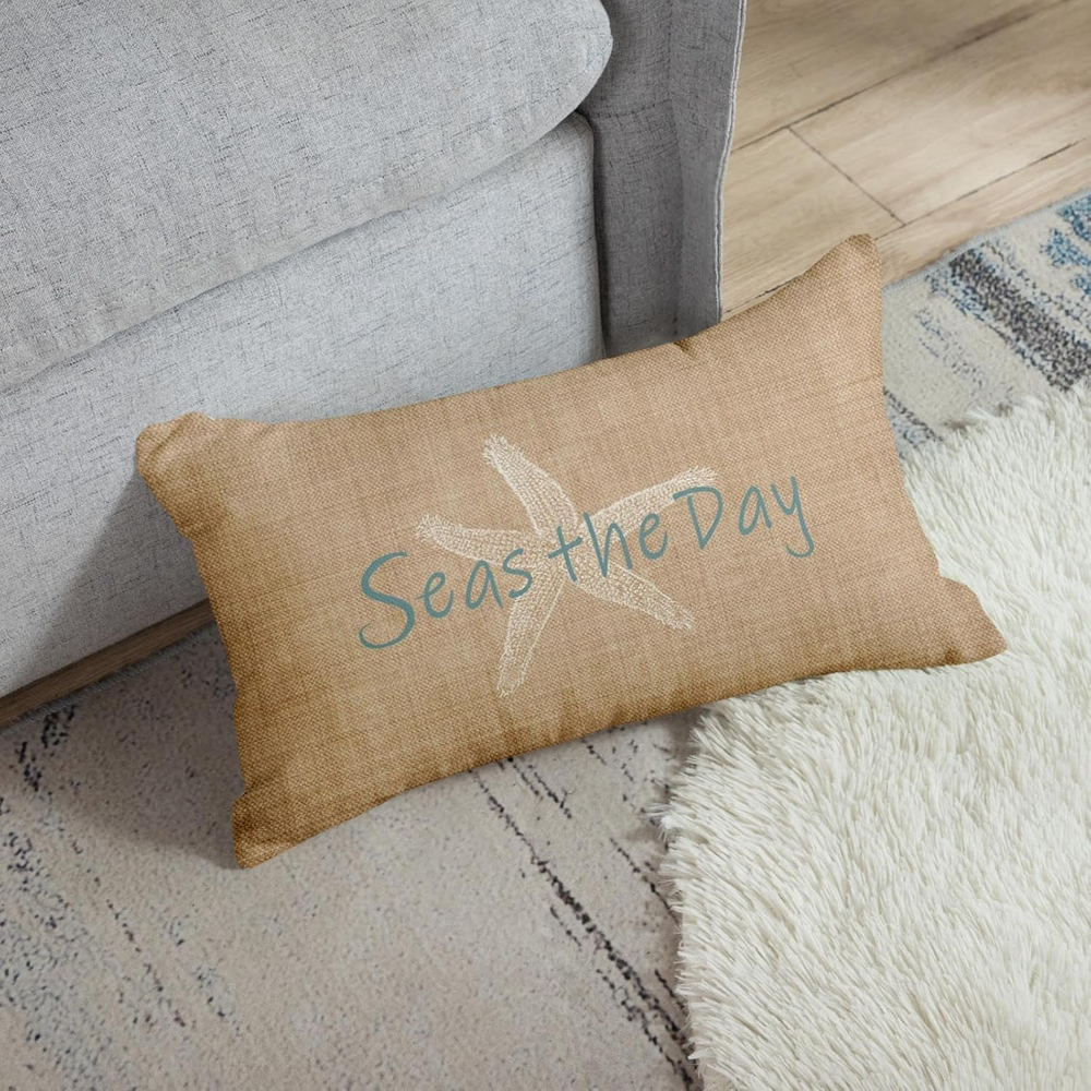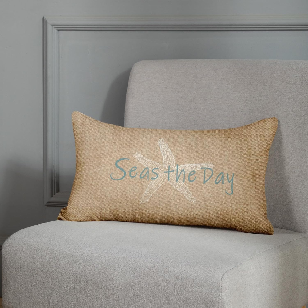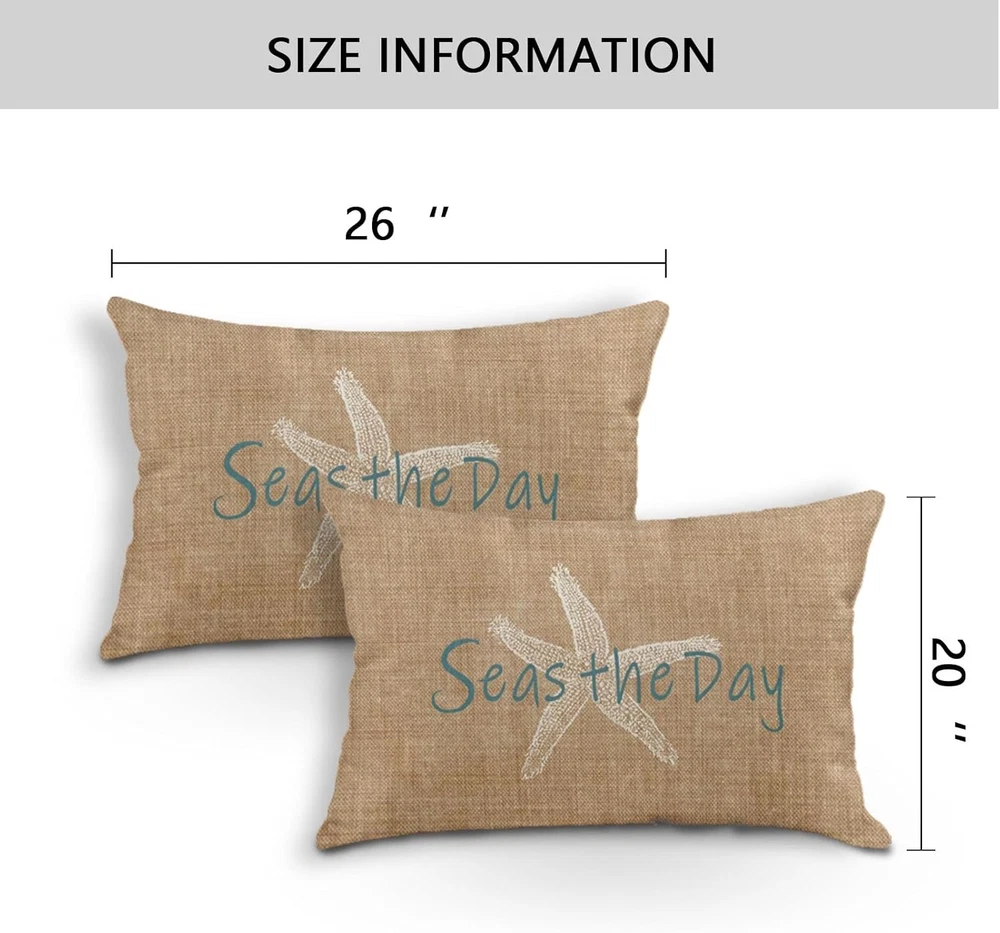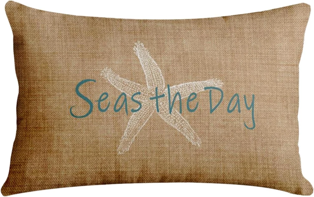 Polyester A white starfish pattern is printed on one side with beach in the background and match with Seas the Day,give pillowcases a perfect summer style, add warmth to your home, and leave a good impression on every visitor. Size:20x 26 inches ,the insert is not include. Material: Single side printing,High-quality breathable linen, hand-made, and tightly woven, make your head soft and comfortable. The high-quality invisible zipper design meets the elegant appearance of these pillowcases. Use of: You can decorate your sofa, bench, bedroom, living room, car, study and any place you want to decorate. Cleaning instructions: machine washable and hand wash in cold water, please dry at low temperature, not bleach. Product Description Super Soft Emvency brings luxury and high quality home decor products to your daily life. Velvet cushion cover can not only protect your expensive pillow inserts, but also mix and match with your other pillows and furniture to fresh up your home. By decorating your home with these covers, you will have a cozy living place and also will receive a lot of compliments from your families and friends. INVISIBLE ZIPPER 1.The pillow cover is made of high-quality breathable linen, durable and very comfortable. Both sides have the same design. COMFORTABLE MATERIAL 2. This cushion cover has an invisible zipper which improves the appearance and provides easy insertion and removal. EASY CARE & WASH 3.Machine wash in cold water alone, only gentle cycle, no bleaching, tumble drying, our pillowcases are mixed with anti-fading and anti-staining, and look always new after each wash. HOW TO CREATE PLUMP PILLOW? Step1: Open up the package , then you need to fold the insert when you put pillow into the cover. Step2: After part of your folded pillow is stuffed in the cover, you should put the left part of the pillow slowly to reduce the risk of zipper split. Step3: Then you can tide up the corner of the pillow. Finally zip up the cover.