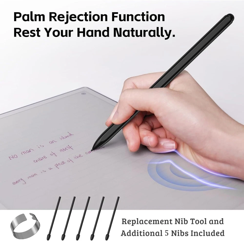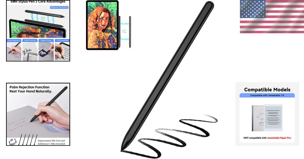 Stylish Magnetic EMR Stylus with Eraser for Remarkable 2/1 - No Batteries Needed ‹ › ‹ › ‹ › ‹ › ‹ › ‹ › ‹ › ‹ › ‹ › Stylish Magnetic EMR Stylus with Eraser for the reMarkable 2/1 Experience Seamless Writing This cutting-edge stylus offers effortless note-taking and creative expression with its intelligent design tailored for the reMarkable 2 tablet. No batteries or pairing are required, allowing you to focus on what truly matters: your ideas. Key Features: Built-in Eraser: Effortlessly correct mistakes by simply flipping the pen - no additional settings or buttons needed. 4096 Pressure Sensitivity Levels: Provides precise responsiveness, ensuring every stroke is acknowledged whether you are doodling or drafting. Palm Rejection Technology: Enjoy an uninterrupted writing experience as you rest your hand comfortably on the tablet without feathery marks. High-Quality Tip: Crafted from durable materials for a smooth and enjoyable writing experience akin to a traditional pencil. Model Compatibility: Designed exclusively for EMR devices compatible with the reMarkable 2/1. (Not compatible with reMarkable Paper Pro or Samsung devices.) Longevity Assured: Comes with a 1- , including 5 replacement nibs for ongoing performance. Why Choose Our Magnetic EMR Stylus? Say goodbye to frequent battery changes and tedious setups. Our stylish EMR stylus not only simplifies your workflow but elevates it with a level of precision usually reserved for the most advanced writing implements. Bring your notes, thoughts, and artistic visions to life seamlessly! Whether you're an artist, a student, or a busy professional, this stylus will become an indispensable tool for all your digital endeavors. Invest in a superior writing experience today! Shipping Free & Fast Shipping - We offer free shipping to most of the USA with a normal delivery time of 3-7 days. However, due to the current situation, additional delivery time (up to 3 weeks) may be required for some items. Alternative Carriers - We may use alternative carriers (e.g. USPS, FedEx, UPS, etc.) to ensure your package arrives safely and on time. Due to the use of multiple carriers, we are unable to provide a tracking number automatically. Handling Time - Orders are processed and shipped within 1-2 business days of receiving cleared payment. Shipping Restrictions - Shipping to Alaska, Hawaii, Puerto Rico, Guam, and other US territories may incur shipping charges or delivery restrictions. Please contact us before ordering, or your order can be refunded/cancelled. State Restrictions - There may be restrictions based on your state of purchase. For example, certain items may not be shipped to California due to state regulations. Contact for Tracking Updates - If you require tracking updates or have any concerns about the delivery of your order, please feel free to contact us, and we will be happy to assist you. Return 30-Day Hassle-Free Returns - We want you to be completely satisfied with your purchase. If you are not, you can return the item within 30 days of receiving it for a full refund or exchange. Easy Return Process - To start a return, simply contact us and we will provide you with a prepaid return shipping label and detailed instructions. Restocking Fee - There are no restocking fees for returns. However, the buyer is responsible for return shipping costs if the return is not due to a seller's error. Refund Processing Time - Refunds will be processed within 5 business days of receiving the returned item in its condition. Payment We accept all major credit cards, PayPal, and Apple Pay for your convenience. Your payment information is secure and encrypted to ensure a safe and seamless transaction. Please complete your payment within 3 days of purchase to avoid any delays in shipping. Feedback Your feedback is extremely important to us. We strive to provide the best products and customer service possible. If you are satisfied with your purchase, please take a moment to leave us a positive review. If you have any concerns or issues with your order, please contact us before leaving negative feedback. We are committed to resolving any problems and ensuring your satisfaction. Contact Us If you have any questions or concerns, please feel free to out to our customer support team. You can contact us through the eBay messaging system. We are available Monday to Friday, 9:00 am to 5:00 pm EST, and we will do our best to respond to your inquiry within 24 hours. Buy it now and enjoy a pleasant shopping experience! Type: Stylus Color: Black