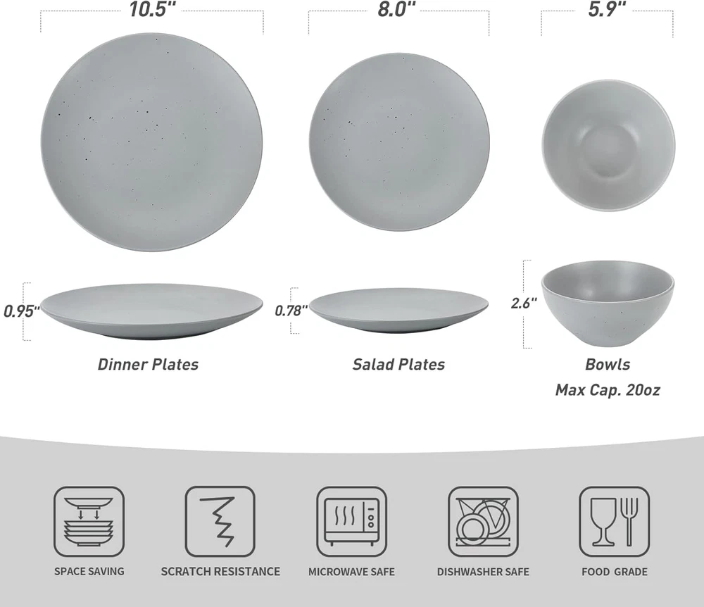Store New Arrivals Add to Favorite View Feedback Contact Moon Dinnerware Sets for 4, 12 Pieces Stoneware Plates and Bowls Sets with Speckled Design, Matte Dish Set, Microwave and Dishwasher Safe, Light Gray Description Item model number Moon Is Dishwasher Safe Yes Is Microwaveable Yes Color Light Gray Pattern Solid Material Stoneware Occasion Wedding, Housewarming, Anniversary, Birthday Item Weight 18.3 Pounds Product Care Instructions Microwave Safe, Dishwasher Safe Material Type Free Bisphenol-A (BPA) Free Collection Name All Finish Type Matte Package Dimensions 17.6 x 13.39 x 7.52 inches Country of Origin China Size Set(12pcs) SERVICE FOR 4 : The dinnerware set includes (4)10.5-inch dinner plates, (4) 8.0-inch salad/appetizer plates, and (4) 6-inch 20 oz bowls, which designed for versatile use in serving everyday meals with efficiency and style DISHWASHER & MICROWAVE SAFE : Famiware plates and bowls are fired at high temperatures to produce a hard and smooth surface.Each plate and bowl is dishwasher safe and microwave safe,which ensuring quick and convenient reheating of meals and cleaning ATTRACTIVE DESIGN : Our dishes set boasts a sophisticated design with clean lines and well-proportioned shapes.The matte glaze is immersed in a beautiful solid color,coupled with personalized speckle.They will add an artistic atmosphere to your table HARD & STURDY : Famiware dinnerware are made of premium stoneware. Whether in everyday use or on special occasions, it can withstand the test and maintain a flawless appearance and function IDEAL MATCH : Build upon your collection of kitchen essentials with this versatile dishware set that offers everything you need for everyday serving. Mix and match different pieces to create a cohesive yet diverse table setting that reflects your personal style and enhances any dining occasion BEST CHOICE : This stoneware set makes for a thoughtful and practical option for your loved ones, offering them an elegant dining solution that combines functionality with visual charm for special occasions or everyday use. It's a great choice for housewarmings, holidays, weddings, and fun celebrations FOOD HEALTHY : ALL our dishes are made of lead-free glaze,which under a constant high temperature without releasing harmful chemicals.You can use them to serve steaks, salads or desserts with safety Product Description Enjoy the dinner moment Attractive and Practical The casual speckled design makes each dinnerware set a unique artwork.The perfect dishes for perfect meals. Our dinnerware set is made from excellent materials, designed to withstand daily use and the test of time. Dinnerware Sets Dinner Plates Salad Plates Pasta Bowls Coffee Mugs Cereal Bowls A Variety of Series to Choose from Add to Cart Add to Cart Customer Reviews 4.6 out of 5 stars 1,103 4.6 out of 5 stars 154 4.5 out of 5 stars 78 4.2 out of 5 stars 181 4.6 out of 5 stars 108 Price $61.64 $ 61 . 64 $60.29 $ 60 . 29 $69.99 $ 69 . 99 $45.99 $ 45 . 99 $57.59 $ 57 . 59 Number of Colors Available 5 7 6 3 4 Color Neutral Colors Matte Neutral Colors Matte Neutral Colors Romantic Colors Retro Colors Glaze Material Single Glaze Single Glaze Single Glaze Double Reactive Glaze Double Reactive Glaze Style Modern and Simplicity Vintage and Elegant Classic and Elegant Handmade and Modern Retro and Romantic Shape Warped Edge Warped Edge Regular Irregular Embossed ABOUT US We offer the best prices around on high quality products. Our E-store includes media such as books, movies, music and games while offering electronics, toys, sporting apparel, clothing, tools, general home, garden items and more. SHIPPING We are always working hard to ensure your package arrives as soon as possible. Please understand that some factors like weather, high postal traffic, and the performance of shipping companies are outside of our control. We offer free shipping to the lower 48 states and ship within 2 business days of payment, usually sooner. We do not accept P.O. Boxes. Please provide a physical address. For shipping outside of the continental USA, we only use eBay's Global Shipping Program.The item is shipped to KY and then sent to the rest of the world. International customers are responsible for all duties and taxes. Continue to check out in order to calculate costs for shipping the item to your country. Messages regarding eBay's Global Shipping Program MUST be directed at eBay EXCLUSIVELY. RETURNS We offer a 30-Day Return Policy on items which you are not completely satisfied with. You have the option for a full-refund or an exchange of the item. No returns are available on items shipped outside of the USA. PAYMENT We accept PayPal. CONTACT US This page content is yet to come Please ad us to your favorite seller and visit again later Thank You CUSTOMER SATISFACTION We try our very best to make sure every customer is completely satisfied. If there's a problem, message us! We're happy to help. WE ACCEPT Copyright © 2021 AutoDS. | All Rights Reserved