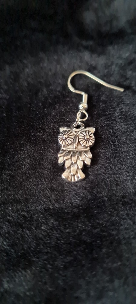 These owl earrings are crafted from aluminium in a dangle/drop style. The colour of the earrings is silver, giving them a sleek and stylish look. Perfect for adding a touch of whimsy to your outfit, these earrings are a charming addition to any jewellery collection. drop is approx 2cm