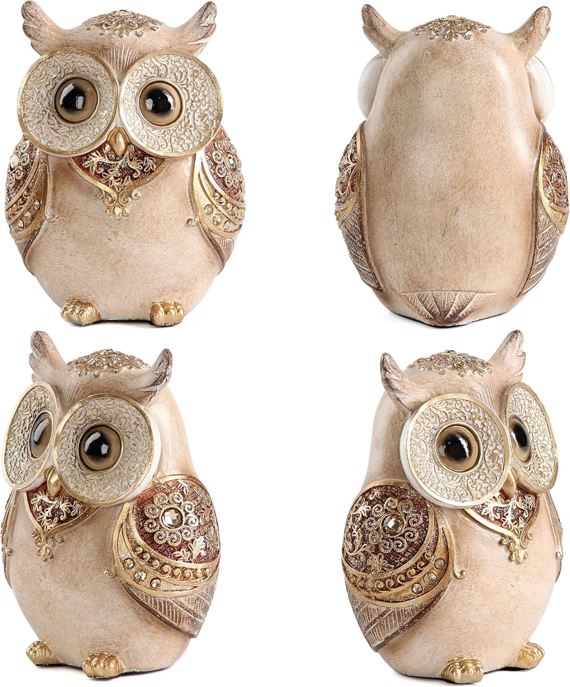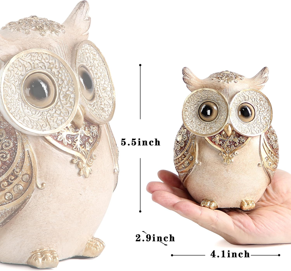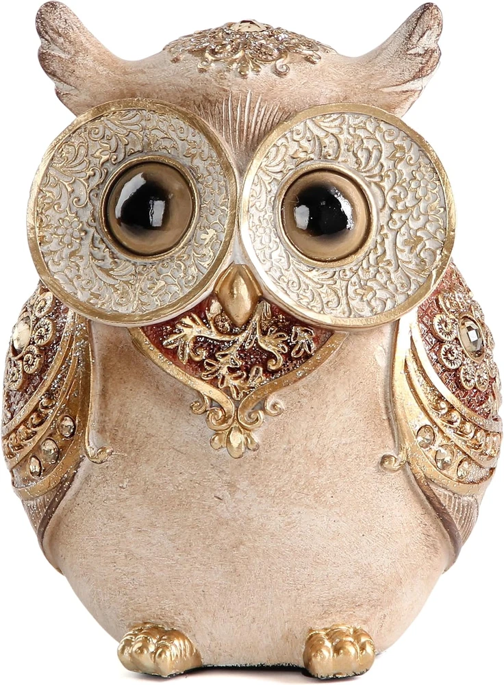 Product Information: The owl figurine is measures 4.1 x 5.5 x 2.9 inch, item weight is 0.55 LB. The owl statue is small but sturdy, made of resin, the soft pad in the bottom will prevent the surface from scratching Creative Design: This owl statue is vivid and special, adorable big eye owl sculptures, painting with antique appearance and mix with brown/golden. Its detailed sculpture is captures the essence of an adorable owl Versatile Display: The owl statue will bring a delightful expression and personality to your place, whether on a shelf, bookshelf, table, desk and windowsill, or in living room, office, bathroom and bedroom. The Decorative Owl will attract attention, act as a centrepiece and blend seamlessly into a variety of settings Holiday idea: The Owl Decoration is perfect as a gift for family/friends/bird lovers or any special occasion on Mother's Day, Birthday, Wedding, Anniversary, Home Welcome and all kinds of holidays Customer Experience: Each owl home decor is well packed in soft polyfoam to protect them safely during transportation Product Description Size&Material Owl figurine is measures 4.1 x 5.5 x 2.9 inch, item weight is 0.55 LB. Owl decor is made of resin. Perfect for Home Unique design and premium sculpture Full of delightful expression and personality Idea for Holiday A wounder gift for families and friends Great for holiday decorations and year round home decor 1 Size&Material 2 Perfect for Home 3 Idea for Holiday Highly Recommend Owl Statue is Very adorable! This little owl is so glitzy and cute at the same time. There are lots of things that make it sparkle including embedded crystals and the paint that seems to have something glittery in it. Cute owl is perfect for a shelf, desk or night stand. There is a soft pad on the bottom so it won't scratch wood or glass. Owl Statue for Home Decorations You will absolutely enchanted by this owl statue decoration! The craftsmanship is impeccable, with stunning details that make it a captivating focal point in your space. The video showcases the product in use. The video guides you through product setup. The video compares multiple products. The video shows the product being unpacked. More Items from Smadeer Owl Statue for Home Owl size is 4.4 x 2.7 x 3.1 inch, and weight is 0.35 lb Material: The statue is made of qualified resin Color: Odd black and white Owl Decor Animal Figurines Decoration The owl figurine is measures 3.5 x 2.5 x 4.7 inch and a weight is 0.4 lb The statues feature premium materials and handcrafted details Buddha Statue This is a half body Buddha with a lotus incense burner This Buddha item is measures 8.8 x 4.7 x 4.9 inches, item weight is 0.8 lb African Statue for Home The African woman is 2.2 x 2.5 x 3.3 inch and weight 0.7 lb A nice gift for family and friends Guardian Angel Statue Angel statue for your family, text “famaily is love” As a gift on special occasions Highland Cow Statue for Thanksgiving The figurine size is 3.9 x 8 x 4.3 inch Happy Fall Festival