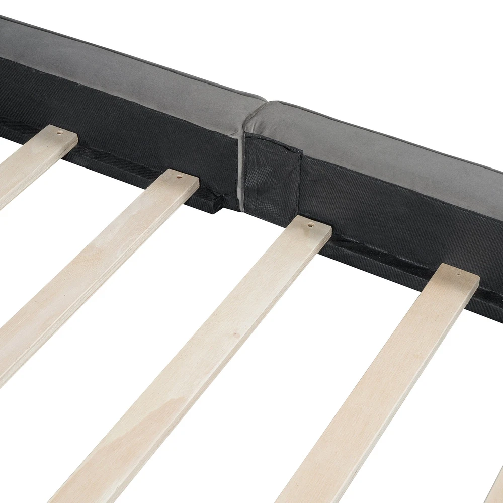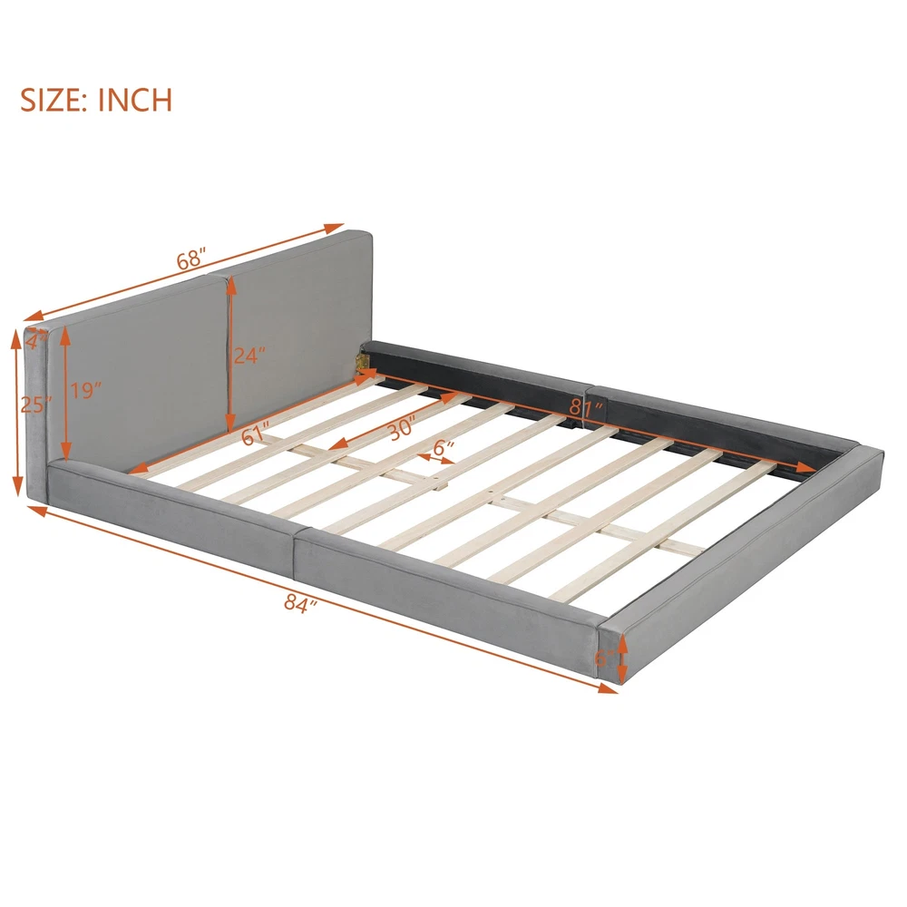 Specifications Place of Origin #originPlace# Main Color Gray Main Material Velvet Bed Size Queen Dangerous Goods #dangerFlag# Dimensions & Weights Assembled Length (in.) 84.00 Assembled Width (in.) 68.00 Assembled Height (in.) 25.00 Weight (lbs) 117.00 Product Features [Elegant Design]Wrapped in velvet for a welcoming touch. It gives any room a spark of style that's both modern and timeless. This platform bed not only suits any home décor, but will be a beautiful piece for your room. [Soft and Comfortable] With soft velvet fabric upholstered all around the bed frame, this platform bed provides a comfortable sleeping and relaxing environment, relieving your fatigue throughout the day. [Stability] The bed frame is made of solid MDF and particle board, providing a dense and strong support for you. The construction ensures both a lifetime of use, and a sturdy bed frame with a head which won't wobble. Enjoy many long years of relaxation and family fun, secure in this meticulously designed upholstered platform bed. [Easy Assembly]The platform bed is delivered in two packages, along with the installation manual and full set of hardware necessary to guide you through the process of assembly, and the bed will definitely be assembled conveniently. [Dimensions] Overall Product Dimension: 84"L x68"W x 25"H. Mattress not included. Some assembly is required, although we have provided clear instructions and tools. Description This beautiful Upholstered Platform Bed adds a contemporary chic look to your bedroom and is upholstered in soft velvet fabric to add extra comfort. Sturdy wood frame construction and a wooden slat system to add extra stability and safety.Enjoy many long years of relaxation and family fun, secure in this meticulously designed platform bed.This grounded upholstered bed will be both a beautiful piece in the room and a place full of fun for your family. Weight & Dimensions Overall Product Dimension 84"L x68"W x 25"H Detail Product Dimension Please refer to the Size image Number of Package 2 Package Dimension Please refer to