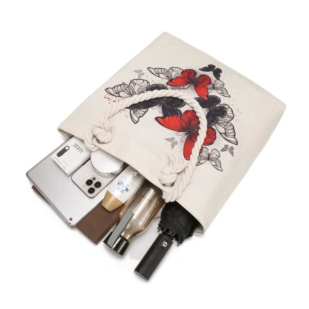 Stylish Rope Handle Canvas Tote Bag Large Durable Reusable Shopping Bag