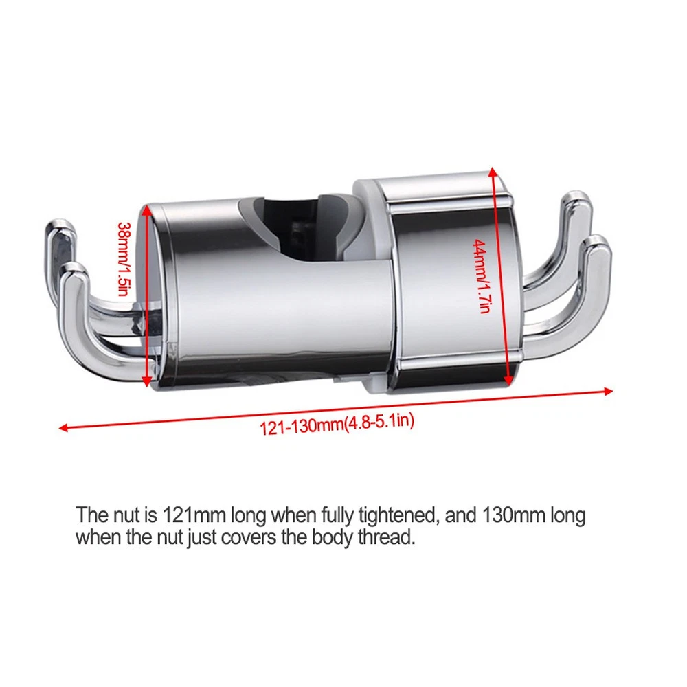Product Description Features: *Full coverage of the keyhole and non-slip rubber pad for stronger locking. Secure the accessory to the slide bar. *Fits 18-25mm thick round shower rods. Easily adjust the height for a comfortable shower experience. Single or double hooks for hanging towels and bathroom essentials. *Just rotate the shower bracket to adjust the desired angle to meet the needs of the whole family. *Tool-free assembly. Loosen the knob, attach to the shower rod, and tighten. Tilt the shower head to the desired angle. *High quality ABS with , scratch-resistant, anti-corrosion chrome plating for long-lasting use. Specification: *Style:A:bracket with hook,B:double hook bracket *Material: ABS *Color:Silver *Size:Installation hole distance: 18mm-25mm Package Contents: *Shower Fixing Bracket Note: . The real color of the item may be slightly different from the pictures shown on website caused by many factors such as brightness of your monitor and light brightness. 2. Please allow slight manual measurement deviation for the data. Payment Payment must be completed within 5 days. If you have any problems about payment, please contact us via ebay message. Delivery details We only ship to confirmed ebay Order addresses. Please comfirm that your Order address is in line with your shipping address. Please kindly note that the c ombined shipping is not provided because the shipping fee is calculated by weight. Also, the each additional item means exactly the the same color and size. It takes about 7 -15 working days to US; about 10-30 working days to other countries. Transit time may be a little delayed because of the bad weather and customs inspection . If you do not receive your item within 30 working days since payment finished, please contact us immediately for further assistance. Contact us We strive for 100% customer satisfaction! Positive Feedback is very important to us. If you have any questions, p lease feel free to contact us via "Ask seller a question" . We will reply your email within 24 working hours.