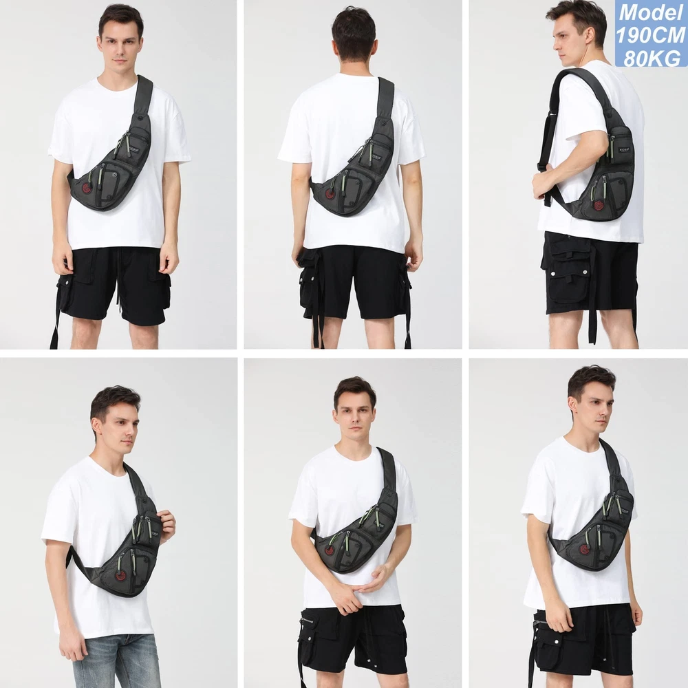 This sling bag is a game-changer—lightweight yet durable with water-resistant nylon that holds up well. The versatile design lets you wear it chest-style, over the shoulder, or even on your back, making it super practical. Fits more than a fanny pack without being bulky, with a roomy main compartment plus handy slots for a tablet, phone, and small notebooks. Perfect for daily errands or quick trips!