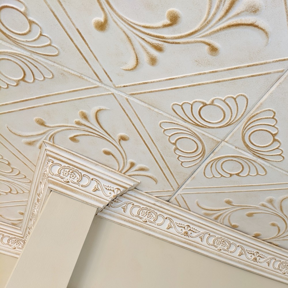New Page 1 New Page 2 New Page 1 Your home is an open canvas We think we can help What are they? Glue up ceiling tiles. They can be glued to walls and ceilings in different kinds of rooms. What are they made out of? Extruded polystyrene, a very light material that makes it easy to work with and maintain. One unpainted tile weights just 1 oz! How big are they? Roughly 19.5 in x 19.5 in x 0.21 in (1 tile covers 2.64 sq. ft) How many 20x20 tiles would you need? Measure your area in square feet and divide the number by 2.64 This is exactly how many tiles you need. We always recommend to add 10% for waste to that number. As example. You have 200 sq ft area. 200 / 2.64 = 76. You need 76 tiles. Add 10% for waste and the final number is 84 tiles. Based on in-house experimentation and user feedback, we only recommend water-based paint for these tiles as any other is likely to damage the tiles. As adhesive we recommend to use PowerGrab All-Purpose (express or clear) or AcrylPro Mastic. Click here to download installation instructions. Please allow 2 to 5 business days to process your order. Transit time varies according to location. Most packages are shipped via FedEx Ground. Hand-painted items may require extra handling time. We do not deliver to PO boxes. All orders outside the US are handled by USPS. International shipping might be available to some countries upon request. Payment must be received within 3 days of the auction's closing date. We work with Paypal, which is a safe way to pay online. Your financial information is never shared with sellers. Refunds will be done within 10 days of reception date. Shipping and handling charges will not be refunded, and a restocking fee will be applied. If you purchased with free shipping, we will also deduct actual cost of shipping, which shipping carrier charged us. The Customer is responsible for return S&H. We recommend to use insured shipping service to avoid any issues. To qualify, you must return all items in their original package, unused and in the same condition as they were received. All damaged goods will be deducted from final refund. Hand-painted items are non-returnable! If you have any questions, please let us know All styrofoam tiles originally come in plain white color from the factory (some models also come in black). If you purchase any other color, the tiles will be hand-painted by our painters. So we consider this type of job as a custom job. Pictures of hand-painted tiles and real tiles in your hands may look a little different due to limitations of the camera. Also different monitors show same colors different ways. We strongly recommend you to purchase samples before you place full order! We will not accept returns for hand-painted items. We have to pay the painters to do the job and it's very hard to resell the painted tiles again, because there are hundreds or thousands of different variations of patterns/colors. Projects made by our customers Crown moldings to match the ceiling tiles Check out our 3D wall panels Collection of our 20x20 styrofoam ceiling tiles... Some of the colors we paint... Some of our best selling 24x24 PVC ceiling tiles...