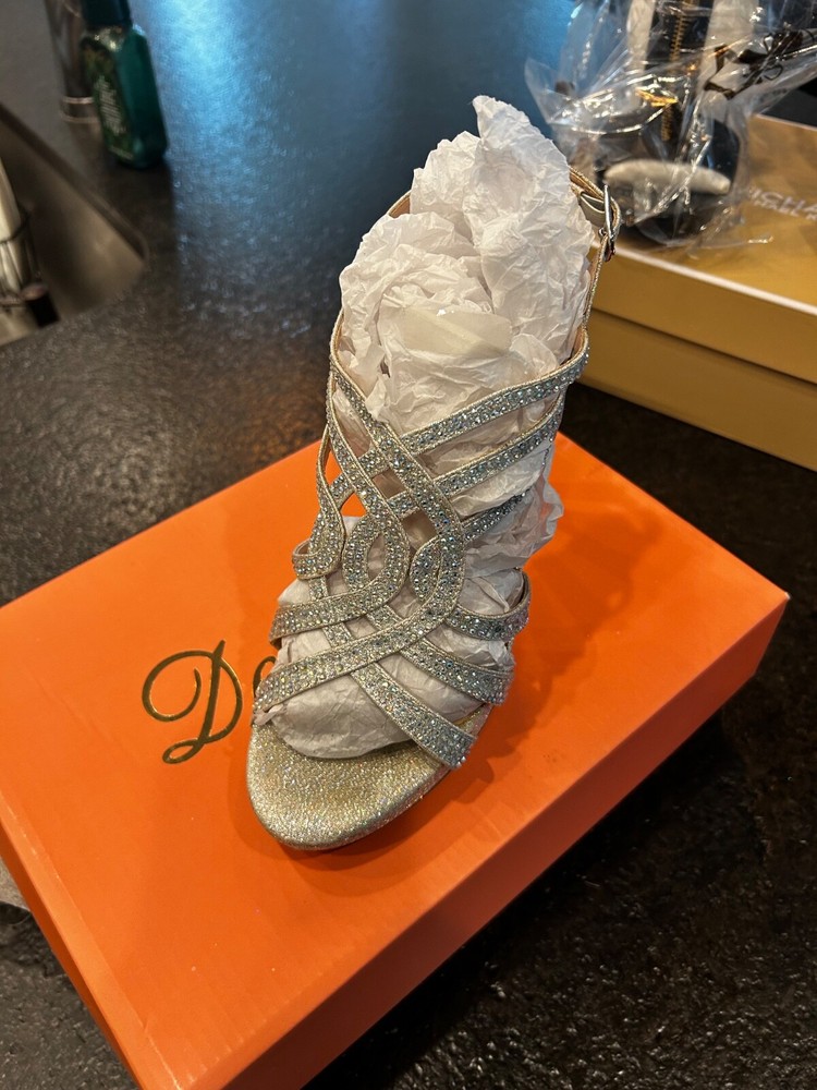 Upper Material:SyntheticBrand:HIGHSeller Notes:“Wore once for wedding. Still have box and packaging.”US Shoe Size:8Style:PlatformDepartment:WomenColor:SilverType:Heel