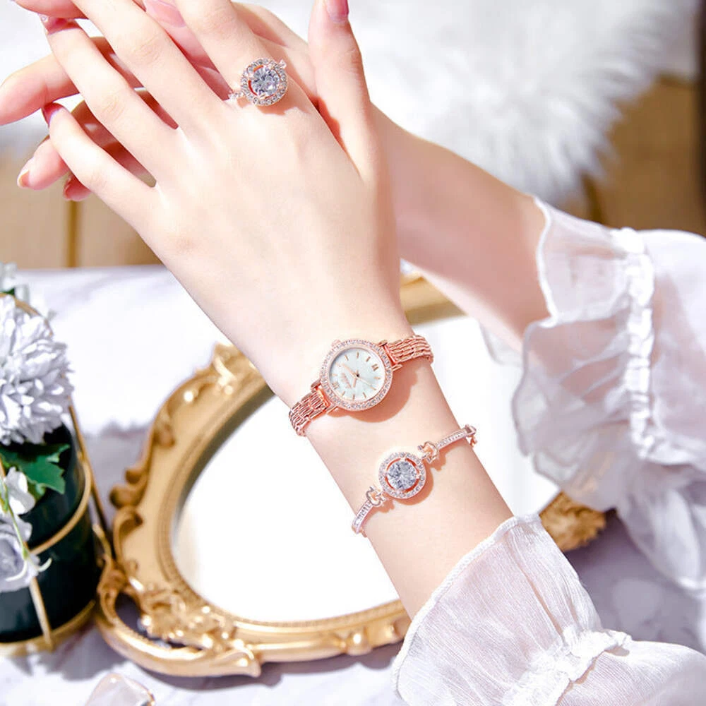 Stylish Women's Quartz Watch with Matching Jewelry Gift Set Product information: Applicable population: female Style: fashion Waterproof: No Movement type: quartz Movement brand: Nippon MIYOTA Xitie City Movement model: Pc Thickness: 8mm Dial diameter: 24mm Mirror material:Mineral reinforced glass mirror Buckle material: titanium metal Band material: alloy Color: 011 alloy five piece drill set Packing list: Watch * 1+bracelet * 1+necklace * 1+ring * 1+earring * 1pair Stylish Women's Quartz Watch with Matching Jewelry Gift Set Product information: Applicable population: female Style: fashion Waterproof: No Movement type: quartz Movement brand: Nippon MIYOTA Xitie City Movement model: Pc Thickness: 8mm Dial diameter: 24mm Mirror material:Mineral reinforced glass mirror Buckle material: titanium metal Band material: alloy Color: 011 alloy five piece drill set Packing list: Watch * 1+bracelet * 1+necklace * 1+ring * 1+earring * 1pair eBay integration by