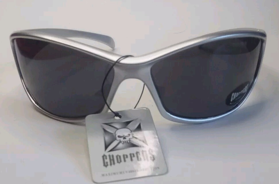 Chopper Sunglasses are New. The Frames are Silver/Gray with UV400 Protection Mirrored Lenses. Shipping USPS $6.45
