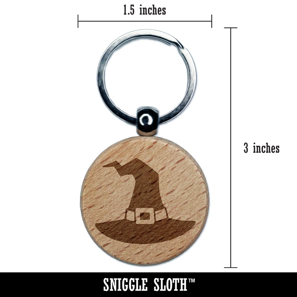 Stylized Witch Hat Halloween Engraved Wood Round Keychain Tag Charm