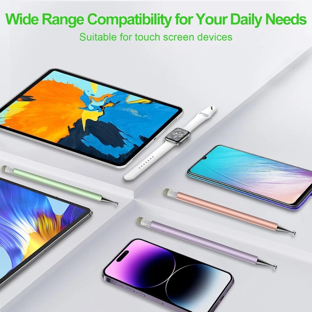 Store New Arrivals Add to Favorite View Feedback Contact Fast deliveries to the customer's home Quality customer service John Make the customers happy! Stylus Pen for Touchscreen,3Pcs 2In1 High Precision Sensitivity Stylus, Suitable for Iphone/Ipad/Android Stylus for Ipad,Compatible with Touch(Green/Purple/Rose Gold + 4Tips) Description 【Touch Screen Stylus】Zhao Cai Jin Bao stylus can be used on all touch screens,stylus pen for touchscreen can free your fingers, the cap-free design makes it easy to carry,there is no delay, lag, anti-slip and noise during use,stylus for ipad will not damage your screen, it is very suitable for learning, drawing and playing games, providing you with higher sensitivity and precision. 【2-in-1 Design Stylus】stylus pen is made of lightweight alloy, and there is no need for Bluetooth connection or charging.stylus for ipad pen has different nibs at both ends. One end is a disc nib/0.2in, which is suitable for taking notes and drawing, and the other end is a durable fiber nib/0.3in, which is used for browsing or scrolling web pages. It can be used after opening the package to meet your different needs. It feels comfortable, durable and anti-aging, making everything feel like writing on paper, and easily capturing inspiration. 【High Precision High Sensitivity】stylus pen for ipad uses a flexible disc tip that can be flexibly attached to the screen without leaving disconnected lines on the tablet or mobile phone, and the fiber head design is more durable than the rubber head,effectively preventing the screen from being scratched and fingerprinted,transparent disc tip allows you to give the exact position when writing or drawing with the stylus. The fiber head and disc tip can bring you two different touch experiences, ensuring that you are using the stylus for ipad accurately without delay, allowing you to write and draw more smoothly. 【Widely Compatible】Zhao Cai Jin Bao stylus pens is compatible with touch screen devices, suitable for Apple, Xiaomi, Samsung, Moto, Lenovo and other touch screen devices. stylus pens for touch screens is also compatible with operating systems such as Google, Microsoft, Android, etc. Whether it is writing, taking notes, browsing the web, playing games, etc,tablet pen allows you to easily switch between devices. Only one stylus can meet your needs, allowing you to fully unleash your creativity on the application,If the device does not respond, please try increasing the pen pressure first, or contact our customer service directly. 【After Service】You will get 3 stylus pen for touchscreen in different colors (green/rose gold/purple),stylus accessories include 2 disc nibs and 2 fiber pen caps, both ends are freely replaceable without tools, you can easily replace them by rotating the end of the fiber pen cap or pulling out the disc nib. You can share the stylus for ipad with your family and friends. When you have problems with the Zhao Cai Jin Bao stylus pen and need help, you can always contact us. Product description Item model number K-518 Item Weight 1.44 ounces Item dimensions L x W x H 7.08 x 1.96 x 0.55 inches Are Batteries Included No Color Green/Purple/Rose Gold Product Dimensions 7.08 x 1.96 x 0.55 inches Material Alloy Compatible Devices Smartphone,Tablet,Android Minimum Required Operating System Version Android 2.3 Gingerbread Batteries Required? No Battery Description No Battery ABOUT US We offer the best prices around on high quality products. Our E-store includes media such as books, movies, music and games while offering electronics, toys, sporting apparel, clothing, tools, general home, garden items and more. SHIPPING We are always working hard to ensure your package arrives as soon as possible. Please understand that some factors like weather, high postal traffic, and the performance of shipping companies are outside of our control. We offer free shipping to the lower 48 states and ship within 2 business days of payment, usually sooner. We do not accept P.O. Boxes. Please provide a physical address. For shipping outside of the continental USA, we only use eBay's Global Shipping Program. The item is shipped to KY and then sent to the rest of the world. International customers are responsible for all duties and taxes. Continue to 'check out' to calculate costs for shipping the item to your country. Messages regarding eBay's Global Shipping Program MUST be directed at eBay EXCLUSIVELY. RETURNS We offer a 30-Day Return Policy on items in which you are not completely satisfied with. You have the option of a full-refund or an exchange of the item. No returns are available on items shipped outside of the USA PAYMENT We accept PayPal. CONTACT US This page content is yet to come Please ad us to your favorite seller and visit again later Thank You CUSTOMER SATISFACTION We try our very best to make sure every customer is completely satisfied. If there's a problem, message us! We're happy to help. WE ACCEPT