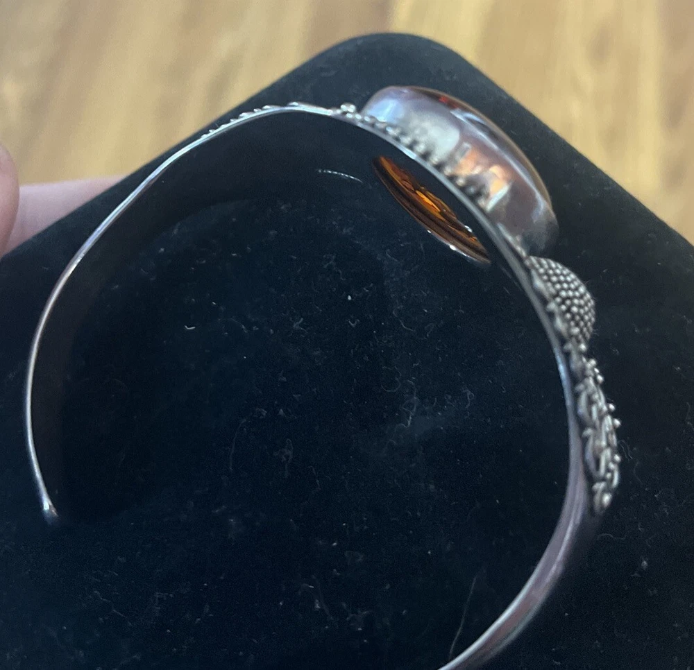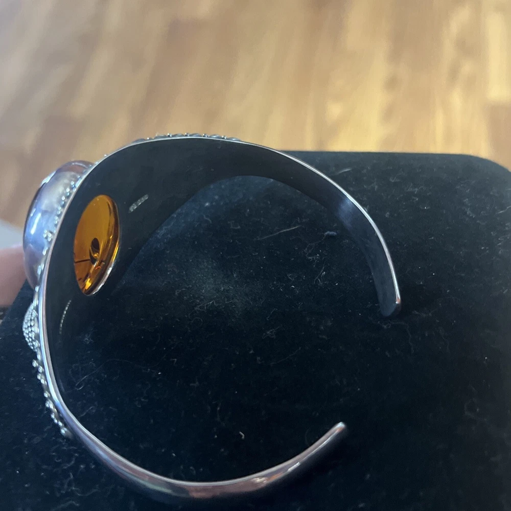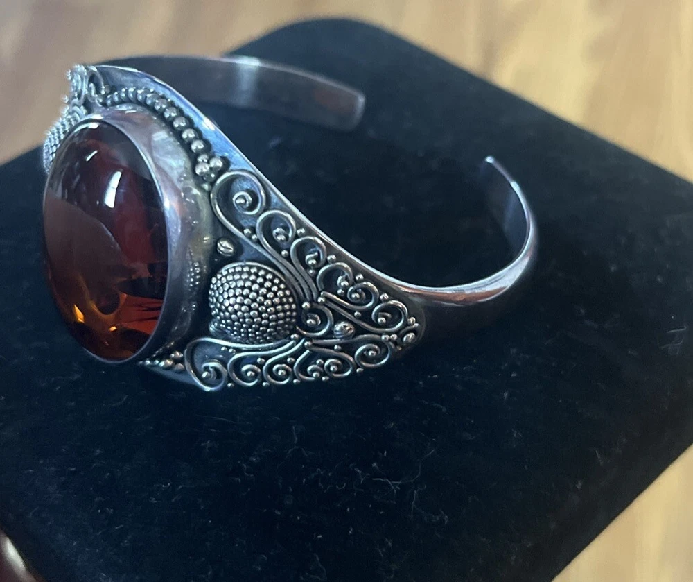 Add a touch of elegance to your style with this stunning Suarti Bali bracelet. Crafted from high-quality sterling silver, this cuff bracelet features a beautiful oval-shaped amber cabochon as its main stone. The unique design and quality material make it a perfect addition to any jewelry collection. This bracelet is perfect for any occasion and can be worn with any outfit. The Suarti brand is known for its high-quality jewelry, and this bracelet is no exception. The amber cabochon adds a warm and inviting feel to the piece, while the sterling silver base metal ensures durability and longevity. Make a statement with this beautiful bracelet and elevate your style today.