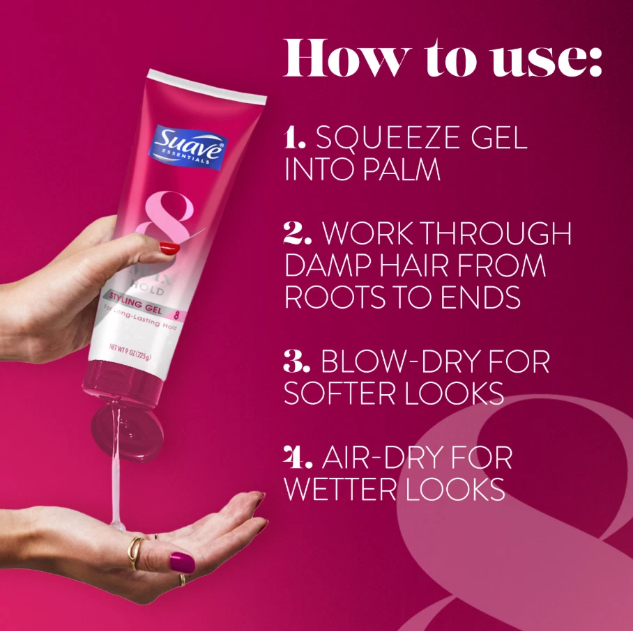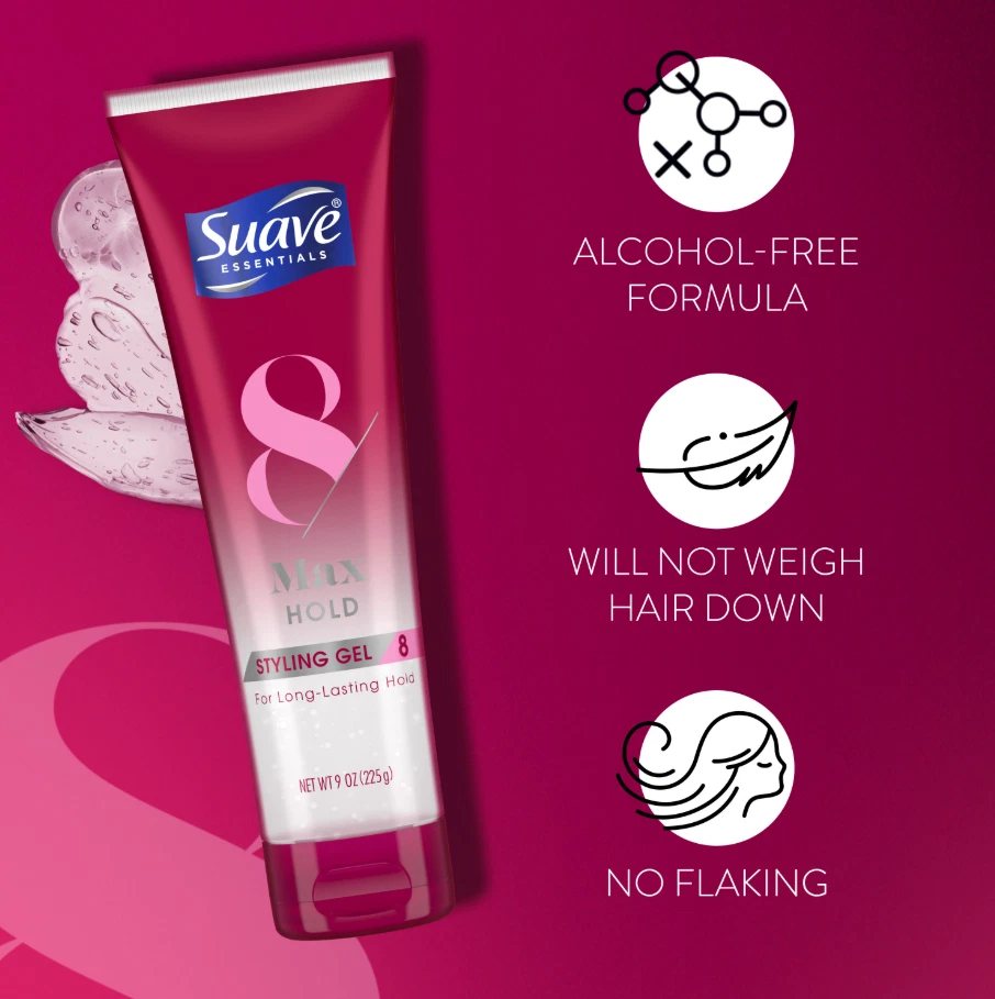 Suitable For: Hair Scent: Fragrance (Parfum) Expiration Date: Not stated on item. Country/Region of Manufacture: United States Hold Strength: Strong Hold Period After Opening (PAO): 6M Hair Type: All Hair Types Active Ingredients: Tetrasodium Edta, Methylparaben, Propylparaben, Silk Amino Acids. Styling Effect: Sculpting Brand: Suave gtin13: 079400181480 MPN: Does Not Apply UPC: 079400181480 Features: Alcohol-Free Type: Hair Gel Product Line: Max Hold Department: Unisex Volume: 9 fl oz Formulation: Gel Color: Clear Ingredients: Pvp, Polysorbate 20, Carbomer, Propylene Glycol, Sorbitol, Triethanolamine, Fragrance (Parfum), Diazolidinyl Urea