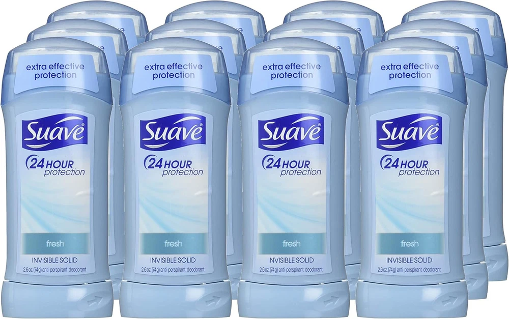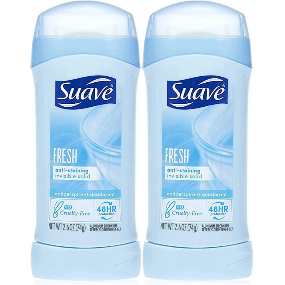 Product Description Suave 48-Hour Anti-Staining Antiperspirant & Deodorant Stick, Invisible Solid, Fresh, 2.6 Ounce (Pack Of 1) Suave's deodorant stick is perfect for active people, and will work to keep you dry and odorless all day. This deodorant for women will fight against sweat to prevent any unsightly sweat patches, and the fresh, pleasant scent in this women's deodorant will keep you smelling good. When you're looking for a strong deodorant, it's best to look for one that will provide a sweat block, at the same time as making you smell good. It's also important to find a product that won't stain your clothes or leave any residue on your skin. You can protect your clothes with this Suave deodorant, which is in a mess-free stick form that glides on and won't leave any residue or telling white marks on your clothes. The Suave Anti-Perspirant Deodorant works best when used with other products in the Suave range. Experiment with different deodorant scents, and try Sweet Pea and Violet or the Coconut Kiss option. SUAVE FRESH VALUE PACK: Stock up with the Suave antiperspirant deodorant, featuring our shower Fresh Anti-Staining Invisible Solid sticks. FRAGRANT DEODORANT: Each Suave Antiperspirant Deodorant stick is infused with a clean, fresh shower scent. 48H OF PROTECTION: When you need extra protection, Suave has you covered with these pleasantly fragrant invisible solid antiperspirant deodorant sticks. ANTI-STAINING FORMULAS: Suave deodorants are designed to stay on your skin and not your clothes. A solid invisible stick makes the perfect travel deodorant. SUAVE IS CRUELTY FREE: Globally, Suave does not test on animals and is Certified Cruelty-Free by PETA. Get long-lasting, 24-hour odor and wetness protection with Suave Invisible Solid Deodorant Suave Invisible Solid Antiperspirant Deodorant stays on skin, not on clothes, so you get effective underarm protection with no messy residue Suave Deodorant for women is recommended for everyday use Enjoy underarm odor protection with the refreshing, clean, shower fresh scent Suave Invisible Solid Antiperspirant Deodorant stick goes on clear so you feel clean and refreshed all day Proven to work as well as specialty brands, Suave Antiperspirant Deodorant is a great value Suave fresh invisible solid deo and antiperspirant stick is anti staining and protects for 48 hours This antiperspirant deodorant provides long lasting odor and wetness protection Suave’s deodorant for women has an anti staining formula stays on skin, not on clothes Suave fresh invisible solid antiperspirant protects with a clean, fresh shower scent This antiperspirant and deodorant stick goes on clear, so you feel clean and refreshed all day Suave deodorant for women is recommended for everyday use Ingredients Active Ingredient: Aluminum Zirconium Tetrachlorohydrex GLY (15.2%).Inactive ingredients: Cyclopentasiloxane, Isopropyl Palmitate, Stearyl Alcohol, Mineral Oil, Talc, Hydrogenated Castor Oil, Fragrance (Parfum), Steareth-100, BHT.