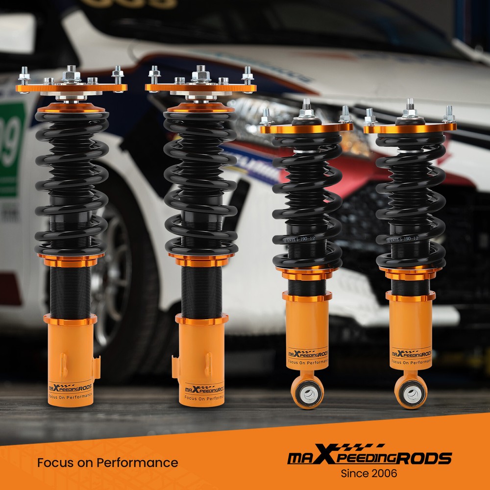 carpartsharehouse Home | Contact us | Promotion Fast hipping International Shipping 30 Days Return Policy Secure Shopping BFO Coilovers Suspension w/ Camber Plates For Subaru Legacy BE Sedan 99-04 Most Competitive Price Manufacturer We know our products Easy Return Quick, Simple Guaranteed Fitment Always the correct part DESCRIPTION Key Features 1. Lowered height adjustment from 1" - 3" which allow lower center of gravity and also add a more aggressive stance 2. Adjustable pre-load spring tension to reduce the shaking motion to a certain extent 3. Adjustable Camber Plate and Pillow ball top mount for sharpening steering response.( for some models) 4. CNC machined Aluminum top mounts and lockers-- - excellent strength, and save weight 5. Heavy Duty Steel Lower Mounts--- Highly Durable & Reliable 6. High tensile spring--- 600,000 times continuously test to assure it's high tensile strength. 7. All inserts come with fitted long rubber boots--- To protect the damper more well and be durable. 8. Twin-Tube structure ---provides excellent handling & control characteristics for most driving conditions 9. Anti-Corrosion Finish - Anodized Aluminum And Powder Coated Carbon Steel Parts Applications For Subaru Legacy 1999-2004 BE Sedan ONLY Not fit Wagon Specifications - Brand: MaXpeedingrods - Condition: 100% - Warranty: 1 Year - Top mounts: front - pillow ball top mount with camber plate; Rear - standard rubber top mount - Damping: non-adjustable - Spring rate Front: 9 kg/mm (504 lbs/in) - Spring rate Rear: 12 kg/mm (672 lbs/in) - Spring length Front: 190mm - Spring length Rear: 190mm - Adjustable height: lowering 1-3inch - Coilover overall length Front: 460mm-520mm - Coilover overall length Rear: 400mm-450mm - Shock type: Twin tube - Spring Preload: 7-10 mm - Color: Golden Package included - Complete coilovers for 2 front and 2 rear - A pair of wrenches for height adjustment ★ 30-day Money Back & 12-Month Replacement Guarantee. Please feel free to contact us if there is any question. SHIPPING US Domestic Shipping Notice - All items will be dispatched within 24hrs(Mon-Fri) Our carrier collects all the parcels at 4:30am PDT, any payment paid after 5:00am PDT will be shipped the next day at 4:30am PDT. If you paid Item Shipped On Est.Delivery Time Before Apr. 1st at 4:30am Apr. 1st at 5:00am Apr. 5th - Apr. 7th After Apr. 1st at 4:30am Apr. 2nd at 5:00am Apr. 6th - Apr. 8th If our estimated delivery time and eBay’s are contradictory,please refer to the standard delivery time of ours. Estimated Delivery Time From To Service Est.Delivery Time US US UPS or Fedex Ground 3-5 Business days Outside of US DHL FedEx 4-7 Business days Please provide the following shipping information for your order Otherwise your shipment will be deferred. We are not responsible for any shipping lost caused by wrong shipping information International Shipment For international shipment, we do not cover any import taxes or duties. Import tax is charged by the government, not us. Our item price and shipping cost do not include any import tax which will be charged by the shipping company when you got the parcel. Please be noted that is not the extra shipping fee. WARRANTY We aim to provide you the good buying experience, 30 days return policy is offered in our store. Please follow our return policy before you return any item(s): If you are unhappy with your purchase for any reason, you can return it to us in an un-used condition in the original packaging within 30 days of purchase and we'll give you a refund or exchange. The refund/Exchange will not include postage/eBay costs. Please note you MUST contact us to obtain a Return Authorization Number before returning any part. Any parcel without the Return Authorization Number will be rejected. If your item is faulty or was incorrect, you must contact our sales representative before returning the parcel and we will endeavour to solve the problem effectively. Video or picture is required to show the item condition before we issue the Return Authorization Number. All VehicalPartsLearder products have 2 year warranty (unless otherwise stated) Important notice: 1. Any returned item(s) without Return authorization number will be rejected. 2. Please return your item(s) in original packaging and ensure that all packages are securely wrapped 3. We will not accept responsibility for loss or damage of goods during transit, please ensure that the insurance cover option is taken where possible 4. Upon receipt, all products will be inspected at our discretion in 3-5 business days. Then, the updated result will be informed. If you have made a mistake on purchase and wish to cancel the order before it is dispatched please contact us by ebay message as quickly as possible. Note: All parcel will be collected by carrier at 8:00am on Monday to Friday. F A Q Will this fit my car? We have used the eBay compatibility list as a guide for buyers to use, but the eBay data system is not accurate and incomplete sometimes. Please make sure you have read through the whole listing and paid attention to “note” and “notice”. If there is any uncertain, please use the eBay message to check with our sales first. How much does delivery cost and how long will it take? You can check the delivery cost in the listing “Shipping and payments” section by selecting your country and entering your zip code. If it is not specified, please provide us your shipping address and zip code via eBay message. For UK domestic shipping, the delivery time is around 2-3 business days. The international shipment delivery time is around 4-7 business days. What payment methods do you accept? We currently only accept payment via PayPal. You can also use PayPal as a guest and pay using a debit or credit card. When will my order be dispatched? We will arrange the shipment in 1 business day after the payment is cleared. The tracking number will be updated on eBay in 24 hours after the shipment. Please notice that there is no shipme