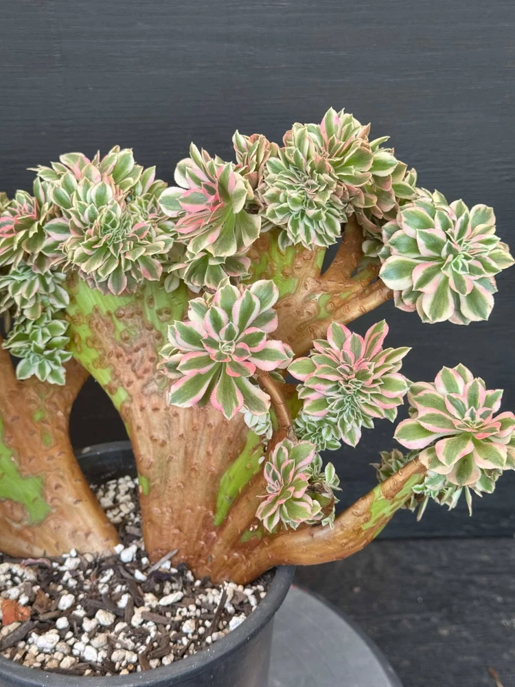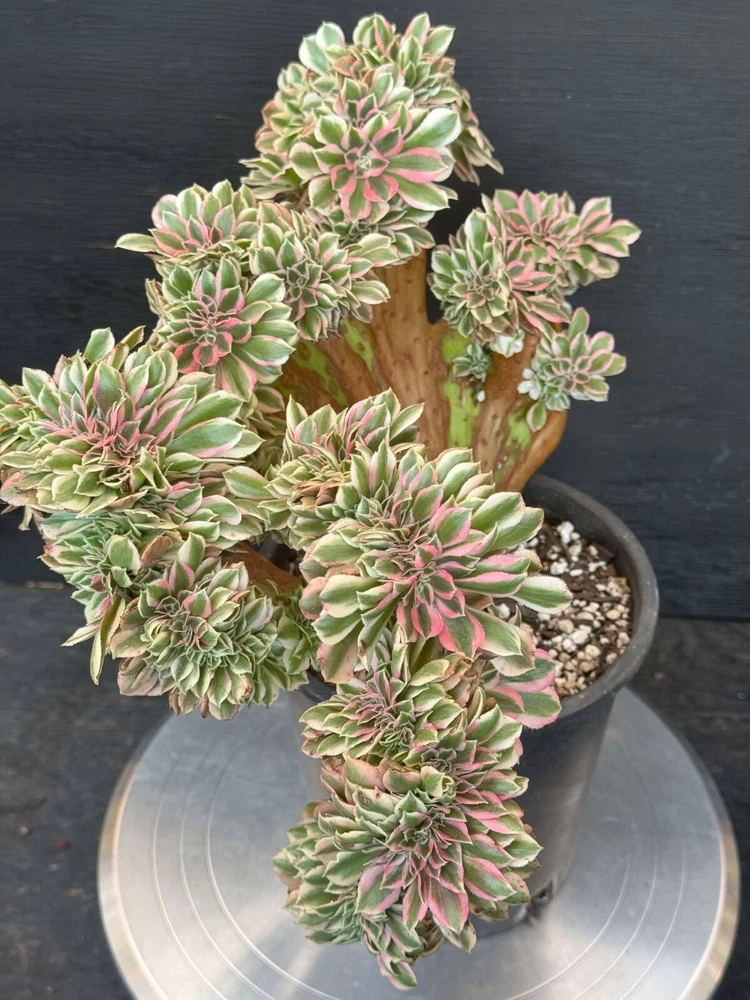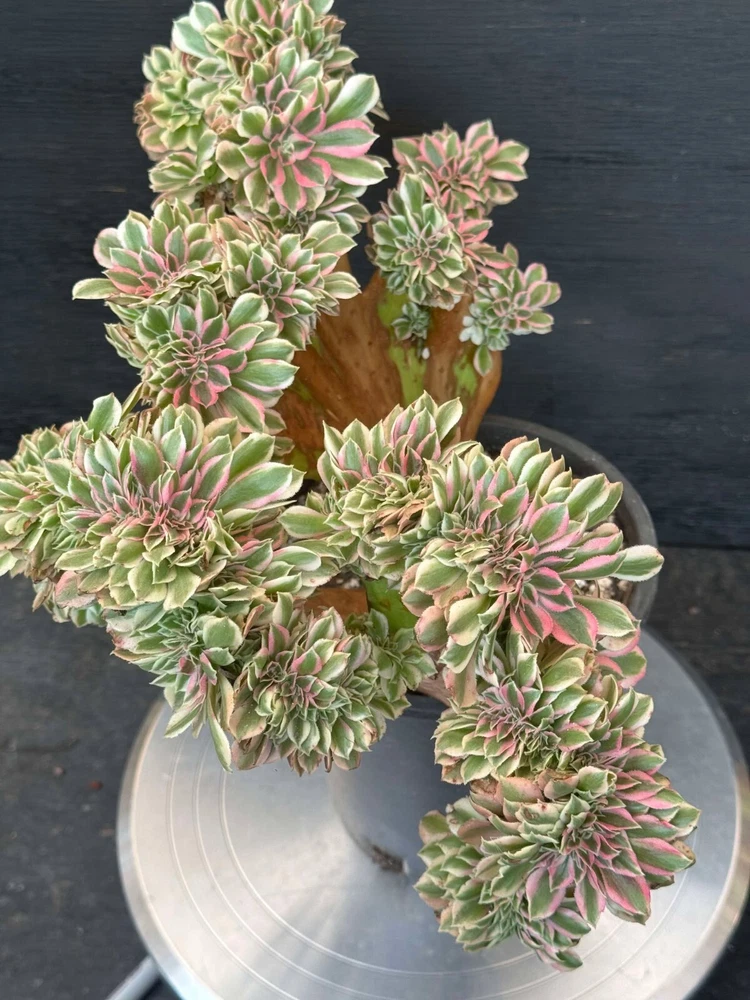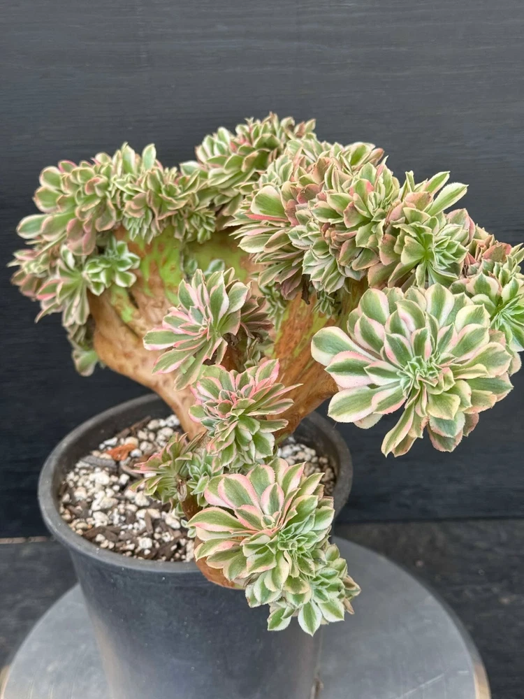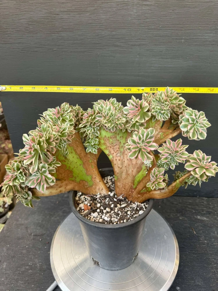 Very Healthy and lively Aeonium White Witch variegated crest Well rooted 15” w, free shipping. You will receive the exact plant in pictures.