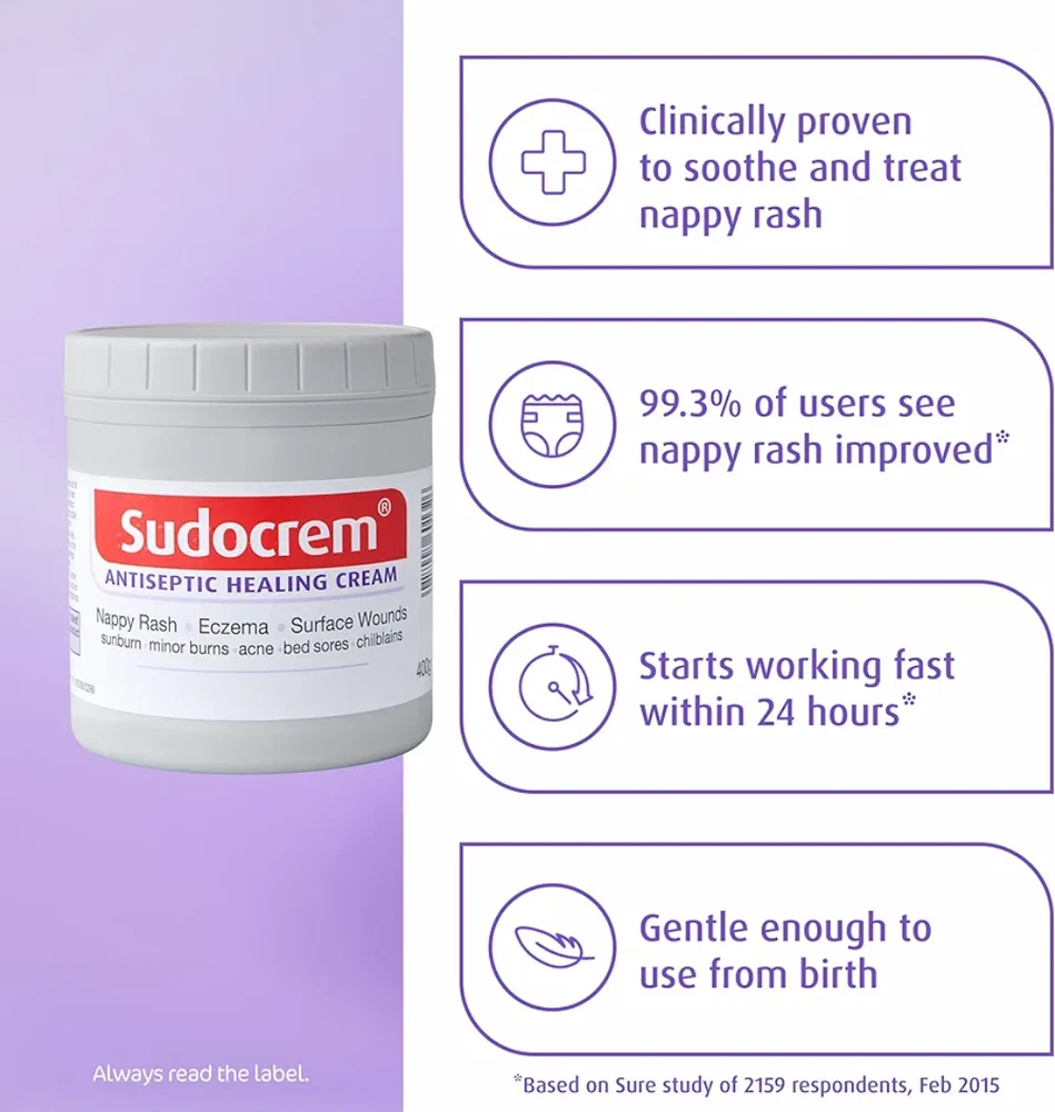 Sudocrem Antiseptic healing cream for eczema & superficial wounds & sunburn 250g Brand: Sudocrem Item form: Cream Item weight: 250 Grams Age range (description)Baby Active ingredientsZinc Oxide Material Type FreeAlcohol Free UK's NO 1 NAPPY RASH CREAM* clinically proven to soothe, heal, and protect your baby’s delicate skin. Reduces nappy rash rapidly**, Gentle enough to use from birth MULTI USE, treats nappy rash, acne, eczema, minor wounds, bed sores, sunburn, minor burns, and chilblains. Sudocrem is an antiseptic cream and zinc oxide cream with antibacterial and antifungal properties UNIQUE FORMULA contains zinc oxide, which helps to reduce the loss of fluid from the skin; hypoallergenic lanolin, which soothes and softens skin; and benzyl alcohol, which has local anaesthetic and antiseptic properties FORMS A WATER-REPELLENT BASE that acts as a protective barrier, preventing contact with irritants like urine and faeces with the skin, preventing further irritation CONTAINS A MILD ANAESTHETIC to help ease pain and irritation ACNE TREATMENT – helps to reduce redness and swelling. Antiseptic properties minimize the risk of infection, which helps prevent the spread of acne-causing bacteria ECZEMA TREATMENT used to calm, soothe, and help heal eczema flare ups on face, hand and body SUNBURN / MINOR BURNS reduces redness and pain associated with sunburn and minor burns helping provide soothing relief SUITABLE FOR ALL SKIN TYPES See less Product specifications General Information Product Name Sudocrem Antiseptic Healing Cream: Nappy Rash, 250 g Weight 250 g Volume 250 litres Units 250.0 gram Brand Sudocrem Format Cream Terms of Sale Color May Vary Slightly Due to the Color Calibration of Each Individual Monitor and Light Brightness Concentration During Taking Picture . Please Note the Picture Not Refer the Actual Sizes of the Goods and You Should Referee to Description and Item Details. We are not responsible for any customs charges or any other international fees. Customs and duties charges and any Additional charges for customs clearance will solely be the responsibility of the buyer. When Customs Clearance Procedures are Required, It Can Cause Delays Beyond our Original Delivery Estimates and We are Not Responsible for any Delays Resulting from That. Please don't forget to LEAVE me FEEDBACK after you get your item in a Satisfactory Condition. If you have any problem with the item, please let me know as soon possible Please review our other products to sell more products and provide good offers Shipping We ship our products with DHL within 3 days of full payment, and a tracking number will be provided once the product is shipped. Shipping takes 3 to 5 days work.