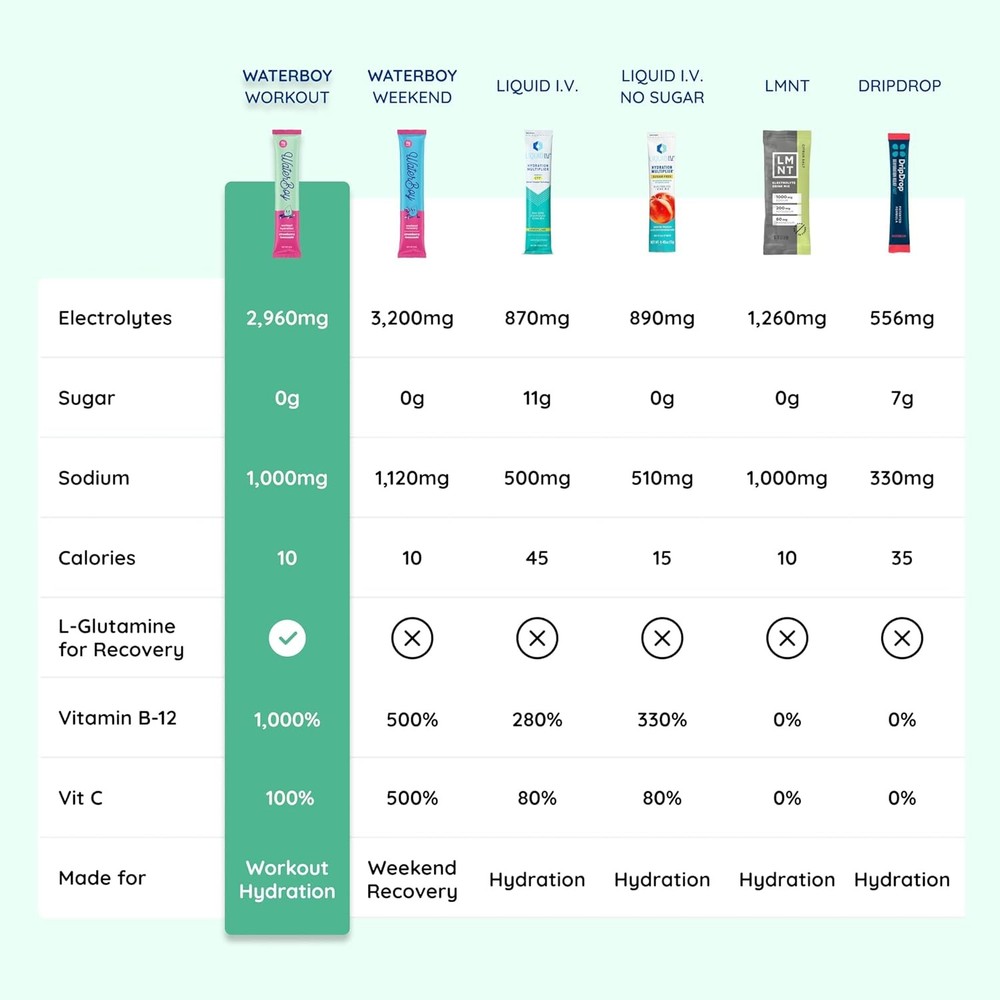 Waterboy Workout Hydration | 2,960mg Sugar Free Electrolyte Powder Packets | L-Glutamine + Vitamins | No Sugar, All Natural, Gluten Free | 15 Drink Stick Mixes (Blue Raspberry) 1 IS BETTER THAN 2: Our 1 stick is equivalent to 3+ sticks of the competition in regard to electrolytes - we jam pack ours with 2,960mg per packet! Not to mention, our electrolyte drink mix is also all natural, gluten free, dairy free, keto and vegan friendly, non-gmo, fasting friendly, contains 0 sugar, has only 10 calories, and is made in the USA! Don’t believe the hype? Compare the nutritional labels yourself! MADE FOR DAILY HYDRATION & SPORTS: Most electrolyte mixes and electrolyte drinks on the market are are LOADED with sugar. Waterboy helps you hydrate without the fillers and junk. L-GLUTAMINE: in addition to electrolytes, we included 400mg of L-Glutamine (naturally occurring amino acid stored in muscles) to help you prevent muscle breakdown and improve immune system functioning. DELICIOUS FLAVORS (SALTY): Waterboy hydration packets come in multiple flavors including Strawberry Lemonade and Lemon Lime. If you like sweet products, you won't like this. Our taste is more subtle and refreshing. WATERBOY: Work hard, play hard. While we like to have fun, we are very health focused and driven to unlock our best self. Shipping We offer FREE shipping on all orders! We ship within Five-Seven business days of payment, usually sooner. We use a selection of shipping services such as UPS, FedEx, USPS etc. We only ship to the lower 48 states, no APO/FPO addresses or PO Boxes allowed. Local pickups and combined shipping options are not provided at this time. Return You can return a product for up to 30 days from the date you purchased it. Any product you return must be in the same condition you received it and in the original packaging. Please keep the receipt. Payment We accept payment by any of the following methods: PayPal Please pay as soon as possible after winning an auction, as that will allow us to post your item to you sooner! Feedback Customer satisfaction is very important to us. If you have any problem with your order, please contact us and we will do our best to make you satisfied. Contact Us If you have any queries, please contact us via ebay. We usually respond within 24 hours on weekdays. Please visit our eBay store to check out other items for sale! Thank you for shopping at our store.