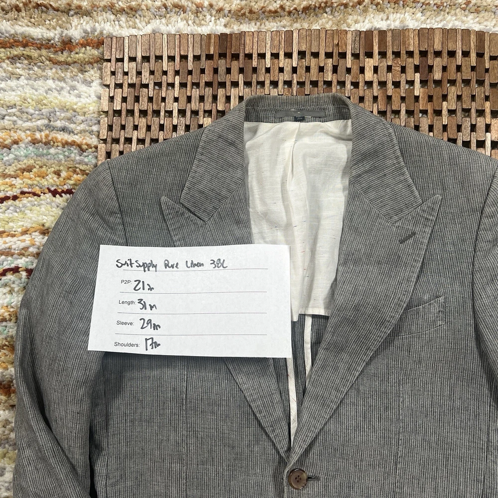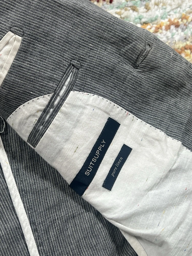 Suitsupply Pure Linen Two Piece Suit Blazer Coat Jacket Pants Slacks Grey 38L