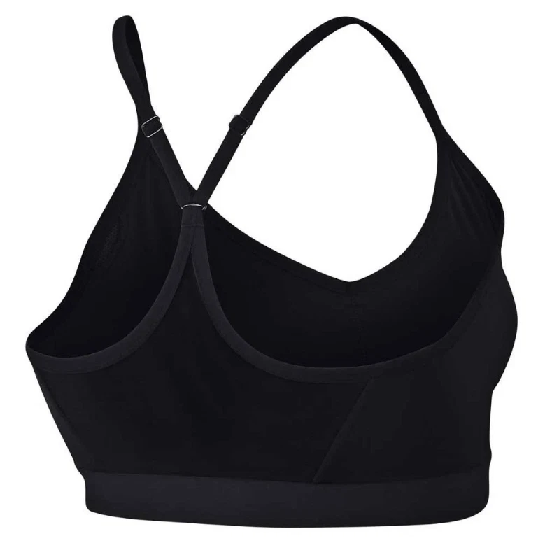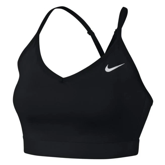 NWT * Nike Dri-FIT Indy Women's Light-Support Padded Sports Bra LIGHTWEIGHT SOFTNESS THAT'S BETTER THAN BRALESS. When you feel like wearing nothing but need a little something, reach for the Nike Indy Sports Bra. It offers light support during low-impact, high-energy workouts such as Pilates, barre and yoga. The low-cut design and thin, adjustable straps work with mesh on the back mesh panel for breathability. This product is made with at least 50% recycled polyester fibers. Sweat-Wicking Design Nike Dri-FIT technology moves sweat from your skin for quicker evaporation —helping you stay dry, comfortable and focused. Optimal Breathability Mesh on the back gives you cooling where it counts. Custom Comfort Adjustable, low-profile elastic straps let you customize the fit. Product Details Tight fit for a body-hugging feel Removable pads Body/lining: 80% recycled polyester/20% spandex Mesh/mesh lining: 81% polyester/19% spandex Elastic: 81-85% nylon/15-19% spandex Interlining: 80% polyester/20% spandex Pad top fabric/pad back fabric: 100% polyester Pad: 100% polyurethane Color: Black/Black/Black Style: BQ0974-010 New with Tag Thanks for looking! Check out my other items for more great deals!