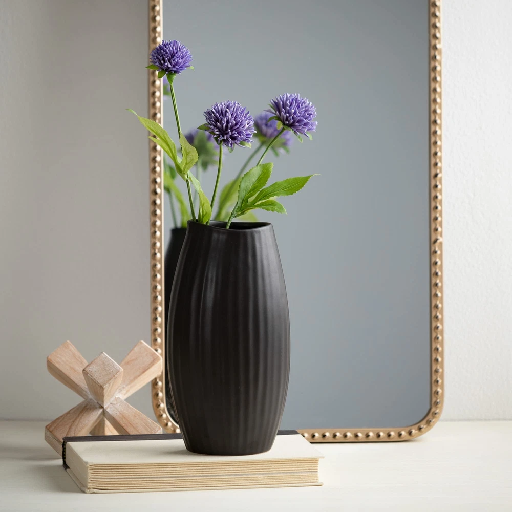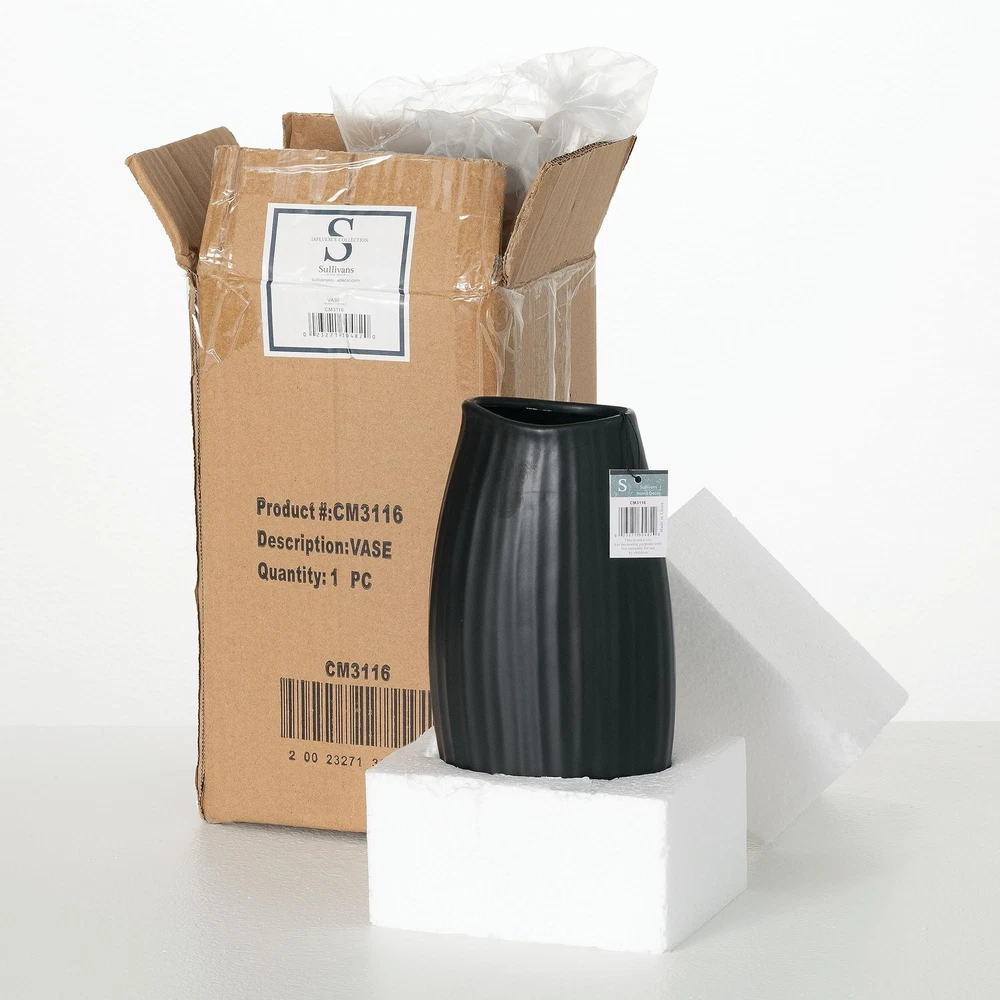 Sullivans Black Ceramic Vase, Black Flower Vases Home Décor, 9” Tall Black Vase, Modern Flower Vase for Centerpieces, Living Room Decor (CM3116) Minimalist Vases For Home Décor- This modern, elegant ceramic vase stands at 9" high, and will add sophistication to any space in your home. Whether you're looking to add a modern touch to your living room, bedroom, kitchen, or office decor, this tall black ceramic vase is the perfect addition. Its' simple yet versatile design allows it to effortlessly complement any decor style, including modern, contemporary, minimalist, and Scandinavian. Flower Vase for Centerpieces- (5”L x 3.25”W x 9”H) This modern decorative vase is watertight, and can be used for real or fake flowers. The wide opening makes it perfect to showcase your favorite bouquet of real flowers, or pair with Sullivans faux greenery stems for an added pop of color. The ribbed textured design is so stunning, you can set this vase out on its’ own to create a beautiful centerpiece. High Quality & Unique Design – Crafted from 100% ceramic, this ribbed vase is sure to stand out among all your other home decor pieces. Whether used as a centerpiece on your tabletop, displayed on a shelf or in your entryway, or placed on a mantle or fireplace, this black ceramic vase is sure to enhance the overall feel of any space. The Perfect Gift For Any Occasion - Not only are these vases a perfect home decor accent, they can be a great giftable for many occasions. Whether you're looking for a housewarming, Wedding, Christmas, Birthday, Anniversary, or Hostess gift, this vase is perfect. Packaged For a Safe Delivery- This vase is packaged securely in Styrofoam to ensure a safe delivery, and avoid breakage in transit. They come in a sturdy box, ready to be wrapped and gifted to a loved one! Shipping We offer FREE shipping on all orders! We use a selection of shipping services such as UPS, FedEx, USPS etc. We only ship to the lower 48 states, no APO/FPO addresses or PO Boxes allowed. Local pickups and combined shipping options are not provided at this time. Return You can return a product for up to 30 days from the date you purchased it. Any product you return must be in the same condition you received it and in the original packaging. Please keep the receipt. Payment We accept payment by any of the following methods: PayPal Please pay as soon as possible after winning an auction, as that will allow us to post your item to you sooner! Feedback Customer satisfaction is very important to us. If you have any problem with your order, please contact us and we will do our best to make you satisfied. Contact Us If you have any queries, please contact us via ebay. We usually respond within 24 hours on weekdays. Please visit our eBay store to check out other items for sale! Thank you for shopping at our store.