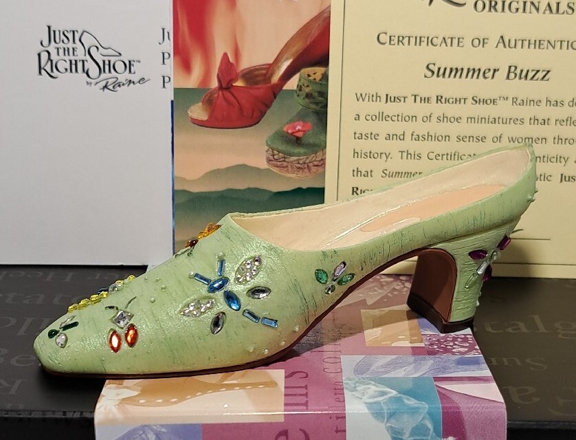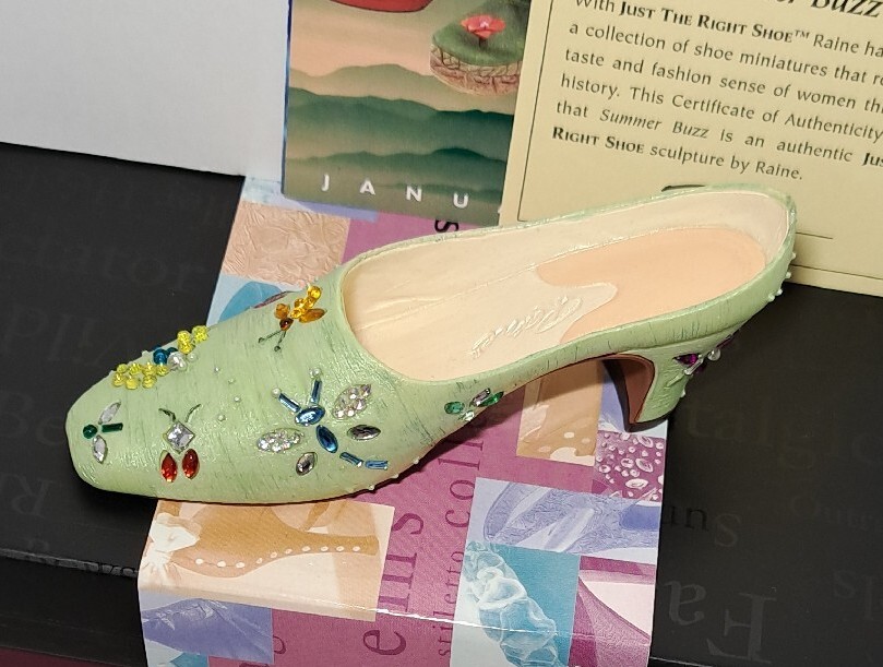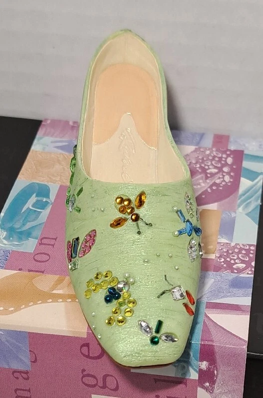 Material:Ceramic, Resin, Plastic, PorcelainTime Period Manufactured:2000-2009Handmade:YesSize:SmallGTIN:0030009251233Room:Any RoomFeatures:Boxed, Limited Edition, Textured, Retired, Gemstones, CarvingsFinish:PaintedType:MiniatureNumber in Pack:1Theme:Novelty, ArtYear Manufactured:2001Brand:Just The Right Shoegtin13:0030009251233Era:Late 20th Century (1970-1999)Occasion:All OccasionsItem Height:1.75Style:ModernSubject:ShoeColor:GreenItem Weight:1 lbOriginal/Reproduction:OriginalCollection:Just the Right ShoeUPC:0030009251233Length:Approx. 4"Production Technique:Batch Production